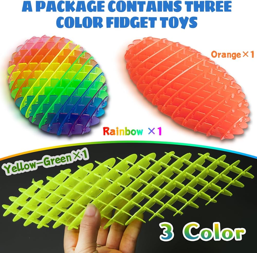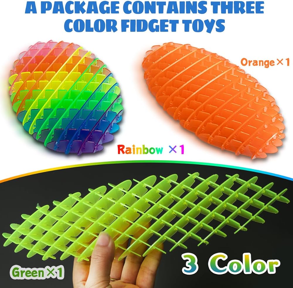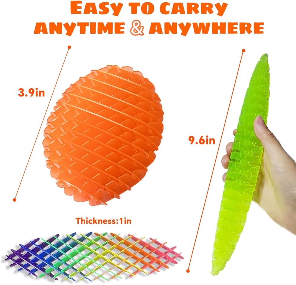 【Fidget Toys & 3PCS & 3Colors】 Our fidget worm toy includes Color×1, Transparent green×1 and Orange×1 in package. 3.9X3.9in handhold size,convenient to carry.