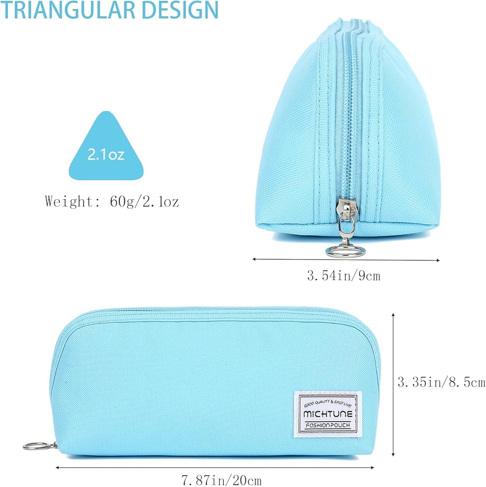 LARGE 0PENING and TRIANGULAR DESIGN:The top of the pencil pouch is designed with a large opening, making it easy for you to view and reach your items. This triangular pencil pouch is very balanced and can be placed firmly on the desktop, it is not easy to tip or cause spillage of items when you reach for them, keeping the desktop neat and tidy.