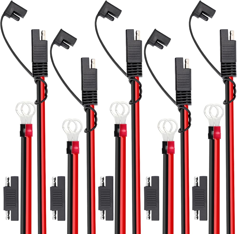 ✅ Package: 2 pcs of 1 Foot / 30 cm, 10 AWG 100% pure copper wire - SAE connector to O-ring terminal; fast and easy to connect and disconnect. Protection cover and polarity reverse adapter are included in the set.