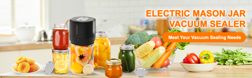 Meeting the Needs of Every Family- Our jar vacuum sealer for mason jars contains a Electric Mason Jar Vacuum Sealer, Five wide- mouth and five regular- can cups for mason jars. Charging cable, Converter, bottle cap opener.Our electric mason cordless vacuum sealer kit will help you remove the air from your Mason jars and extend the life of your stored food.