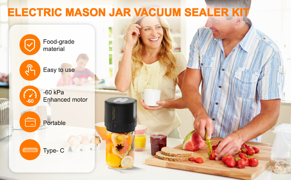 Long- term Food Fresh Saver: Electric vacuum pump, free your hands, use in confidence, our hand vacuum sealer for jars is made of ABS plastic and food- grade silicone, you can use to extract the air from your mason jars. saving time for busy home chefs. The sealer is too big to carry with you when you travel or have a picnic, You can also use this cordless mason jar sealer instead of it.
