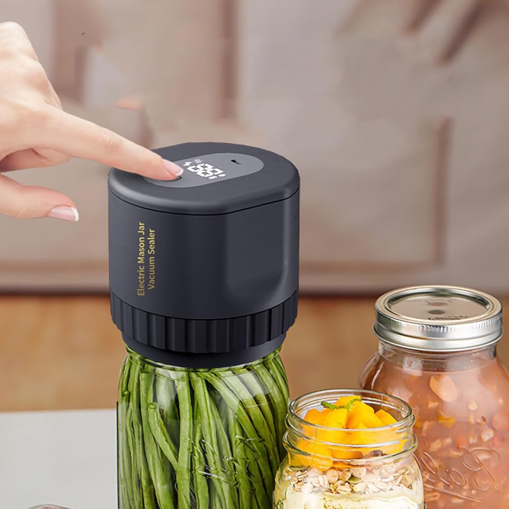 Auto Stops: The Food Vacuum Sealer with Standard Mouth Sealer Converter Kit is suitable for wide mouth and regular mouth Mason jars, The jar vacuum sealer for mason jars, with its built- in LED display, simplifies the vacuum sealing process.Simply align, press the button and wait. Auto stops when the air is fully sucked out.