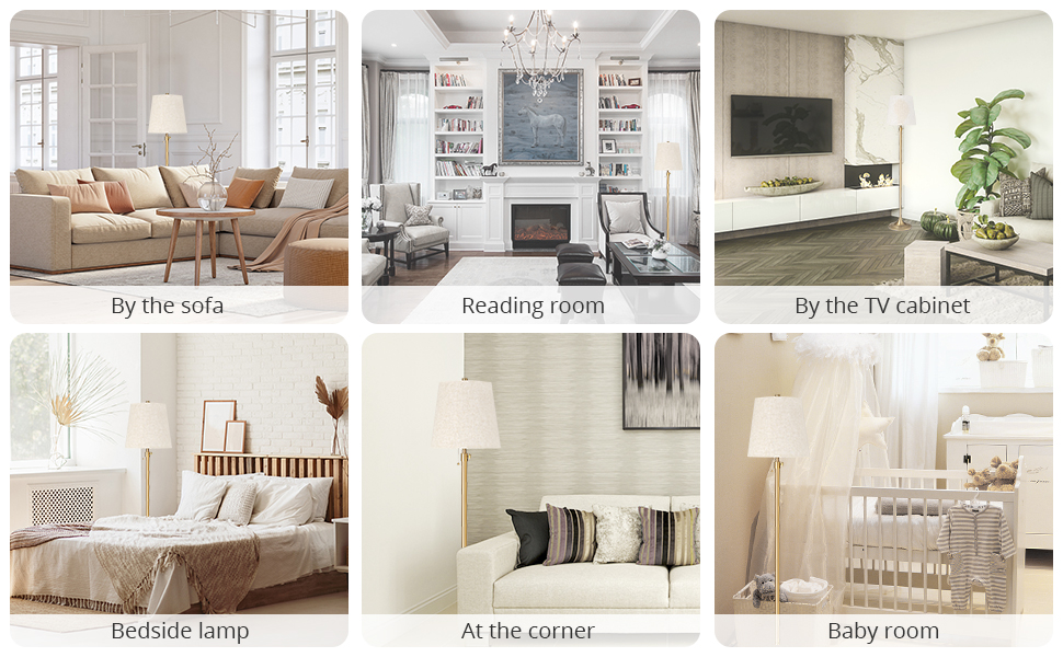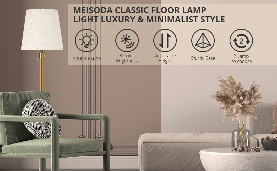 Personalized Lampshade Design - Equipped with 2 stylish lamp shades, Meisoda floor lamp is able to match with most home style. One is cone shaped with beige color, and the other one drum shaped with warm white color. The lamp shades are made of 100% linen with polystyrene lining which is durable;