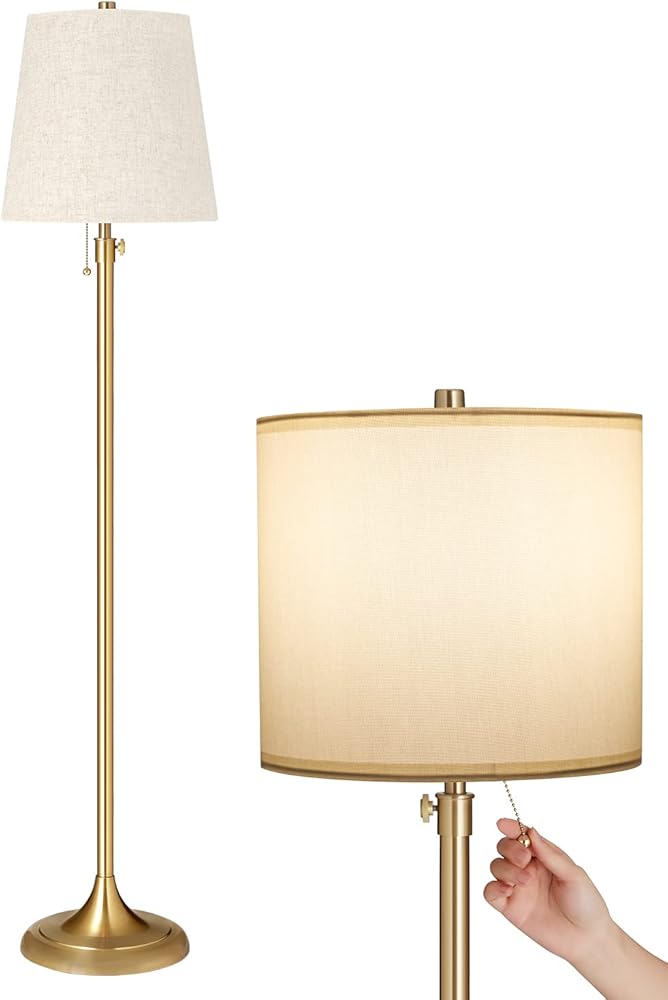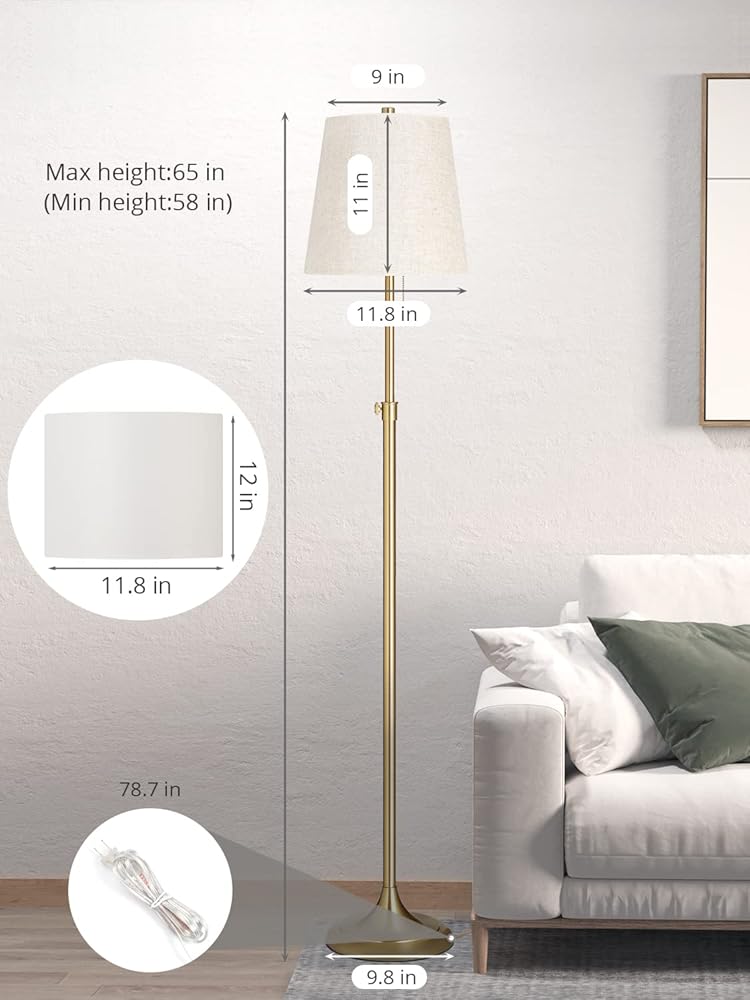 Adjustable Height - The height of the standing lamp is adjustable between 58" and 65" by the knob on the pole. Easy to raise and lower its height beside your sofa, chairs and desks, meet your different lighting needs. Sturdy pull chain switch is easy to operate and equipped with 6.8 feet power cord;