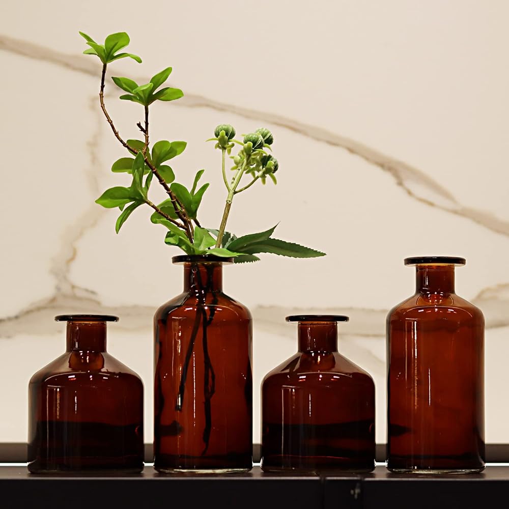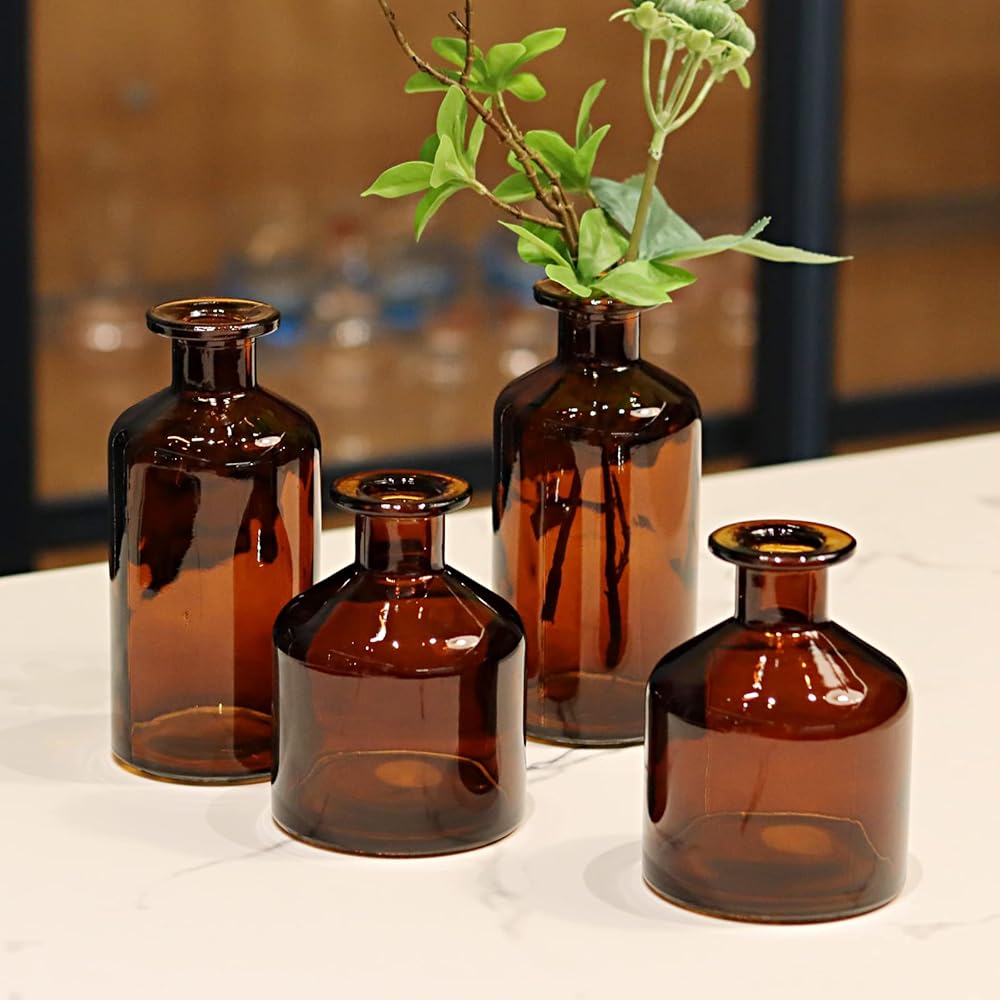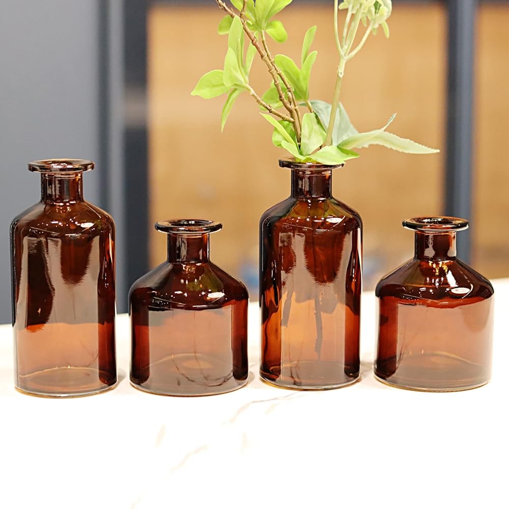 Want to add a touch of elegance to your floral arrangements? Look no further than our set of 4 Amber Glass Vases! These stunning vases are made of high-quality glass, and their beautiful amber color complements any decor style.