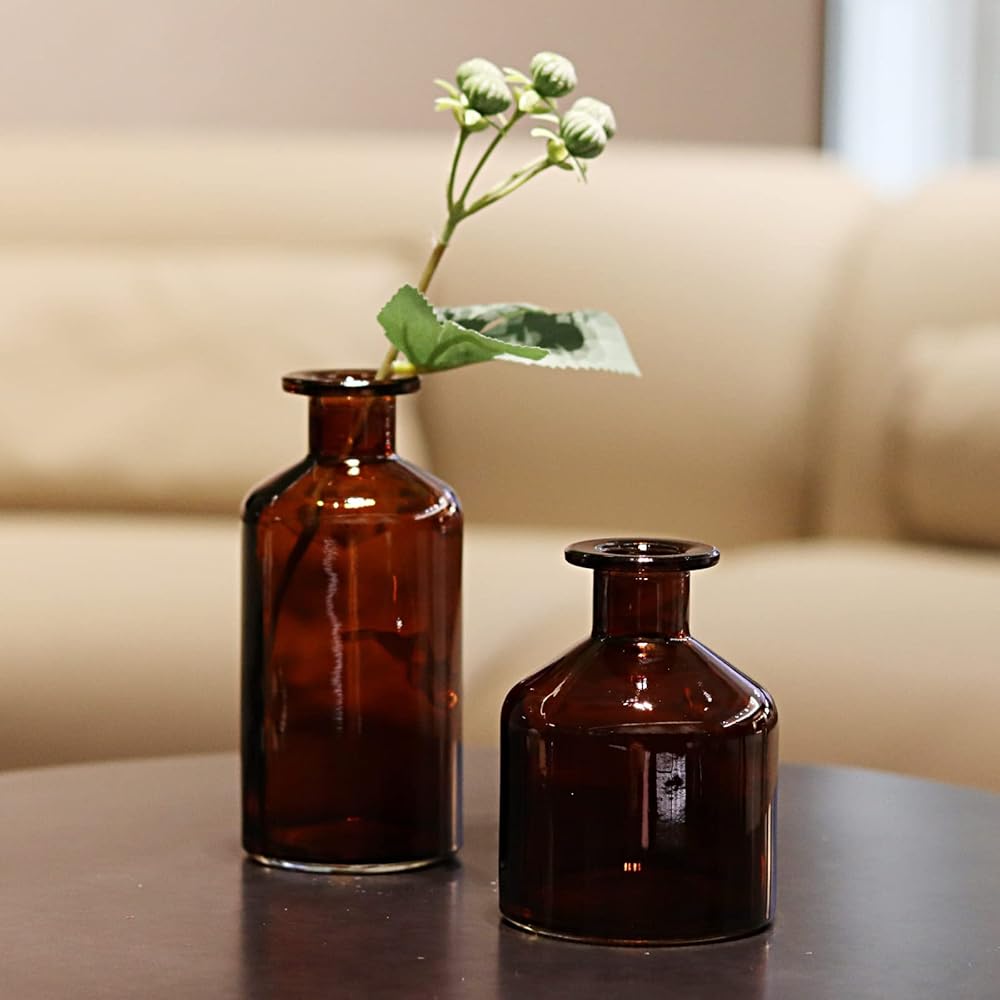 Add a touch of sophistication to your home decor with these stunning amber glass vases! Their sleek, modern shape and high-quality glass material make them the perfect addition to any table centerpiece.