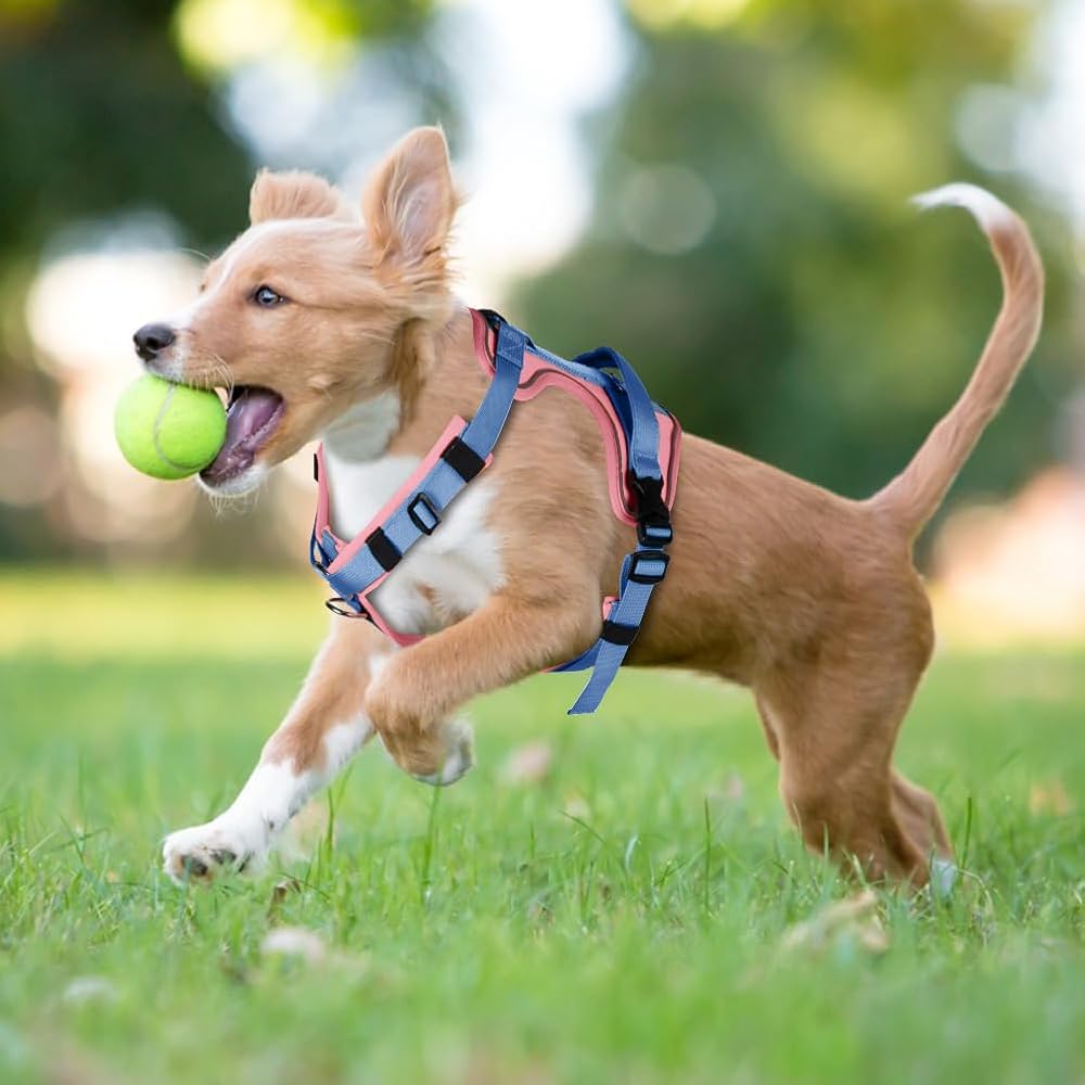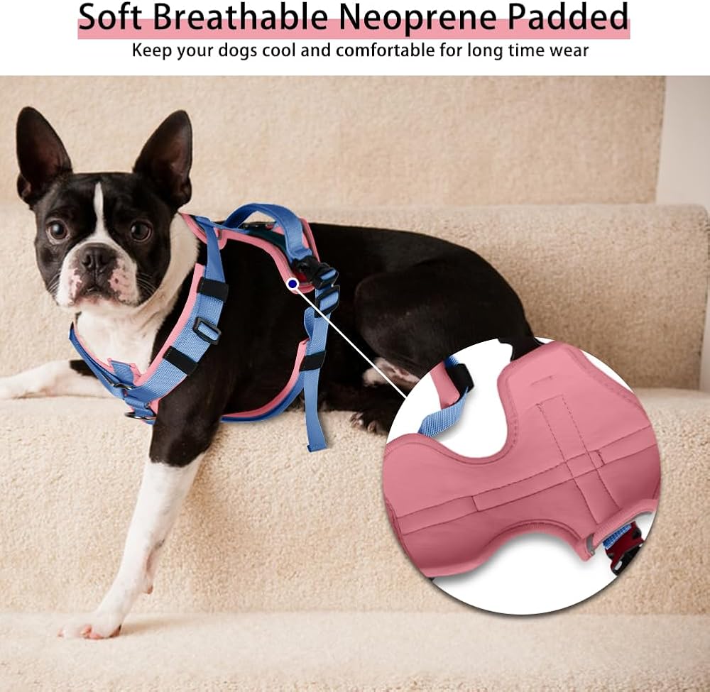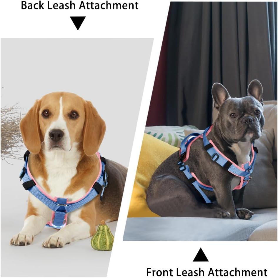 Dog Harness for Medium Large Dogs No Pull Adjustable Reflective Pet Harness with Front Clip,Step-in Soft Padded Vest Easy Walk Dog Harnesses with Control Handle (M, Pink&Blue)