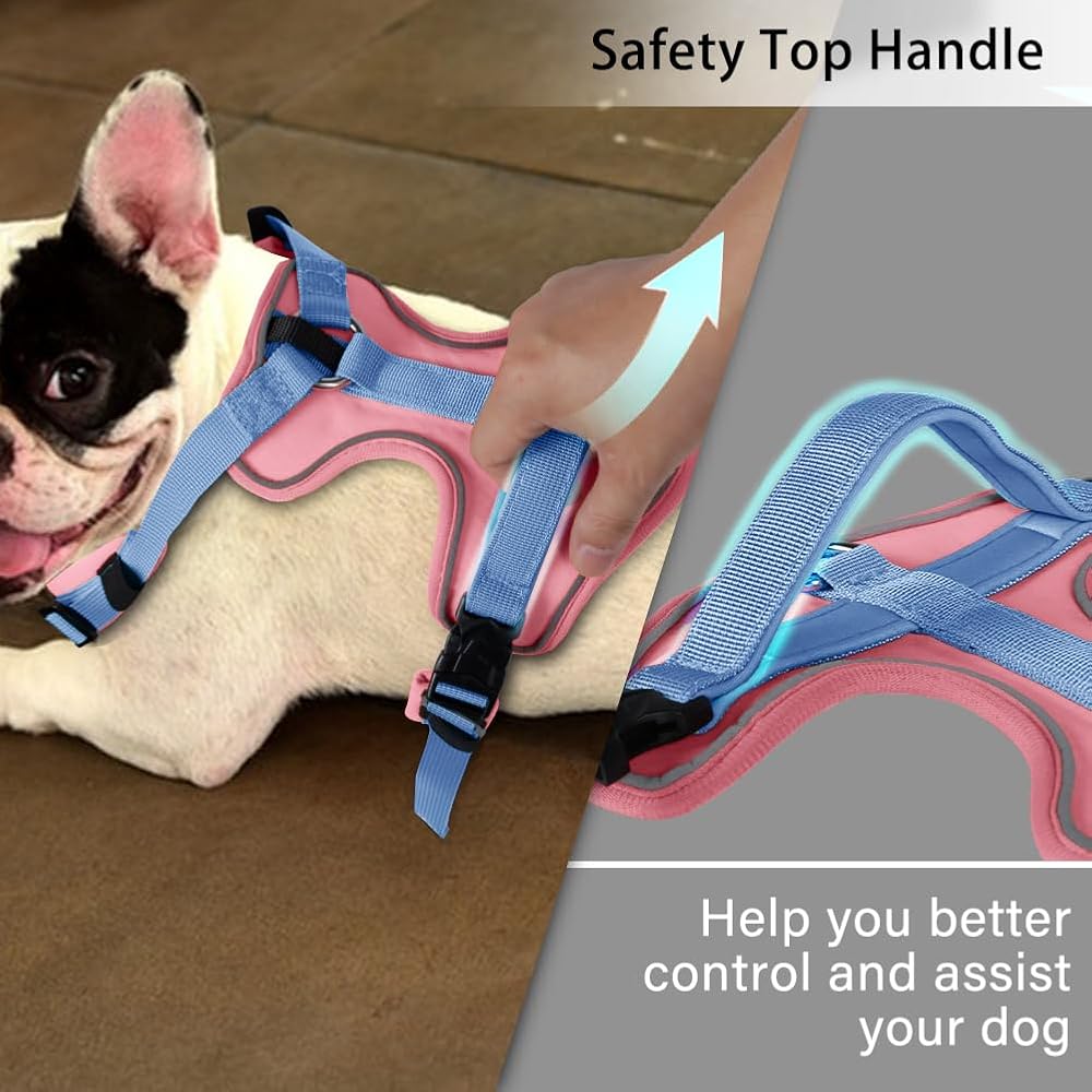 Reflective Strap & Control Handle:This reflective dogs harness design with highly reflective straps ensure your dog's safety while out for walks at night;Soft filling makes for a handle that feels good in the hand for extra control to guide your dog.
