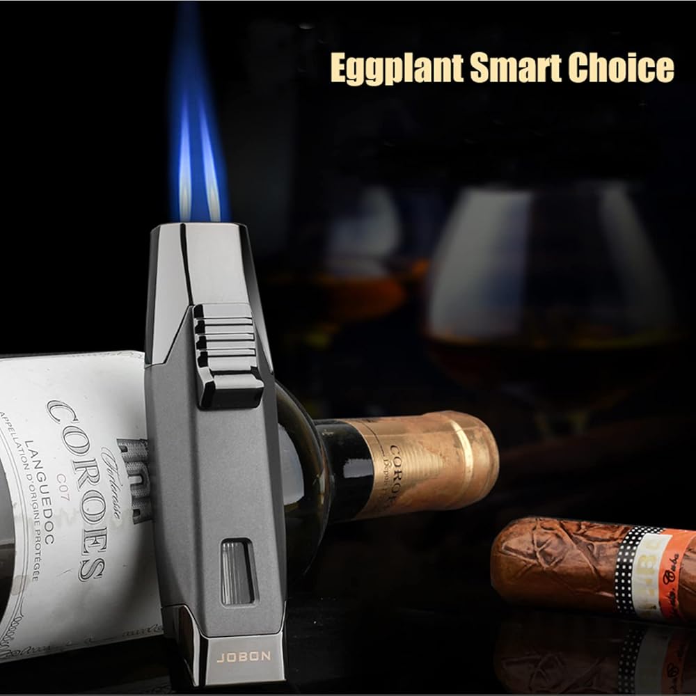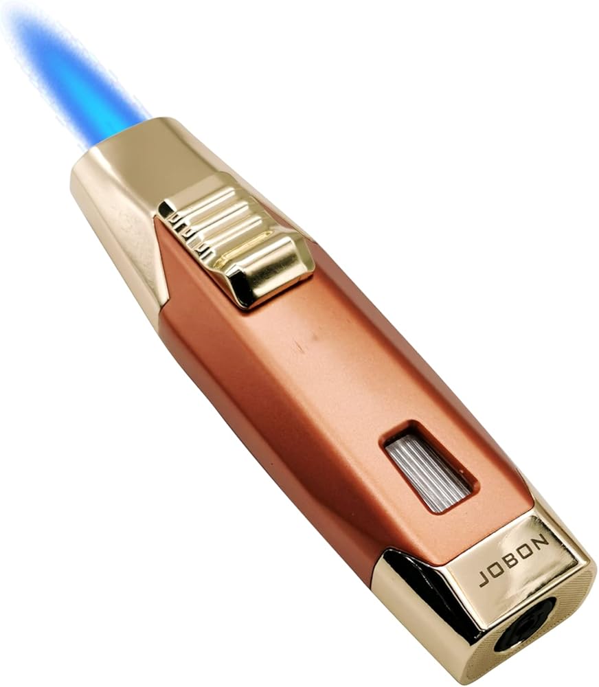 JOBON Torch Lighter, Adjustable Double Jet Flame Refillable Lighter with Gas Window for Candle Grill Baking Camping (Butane Not Included) (Gold)