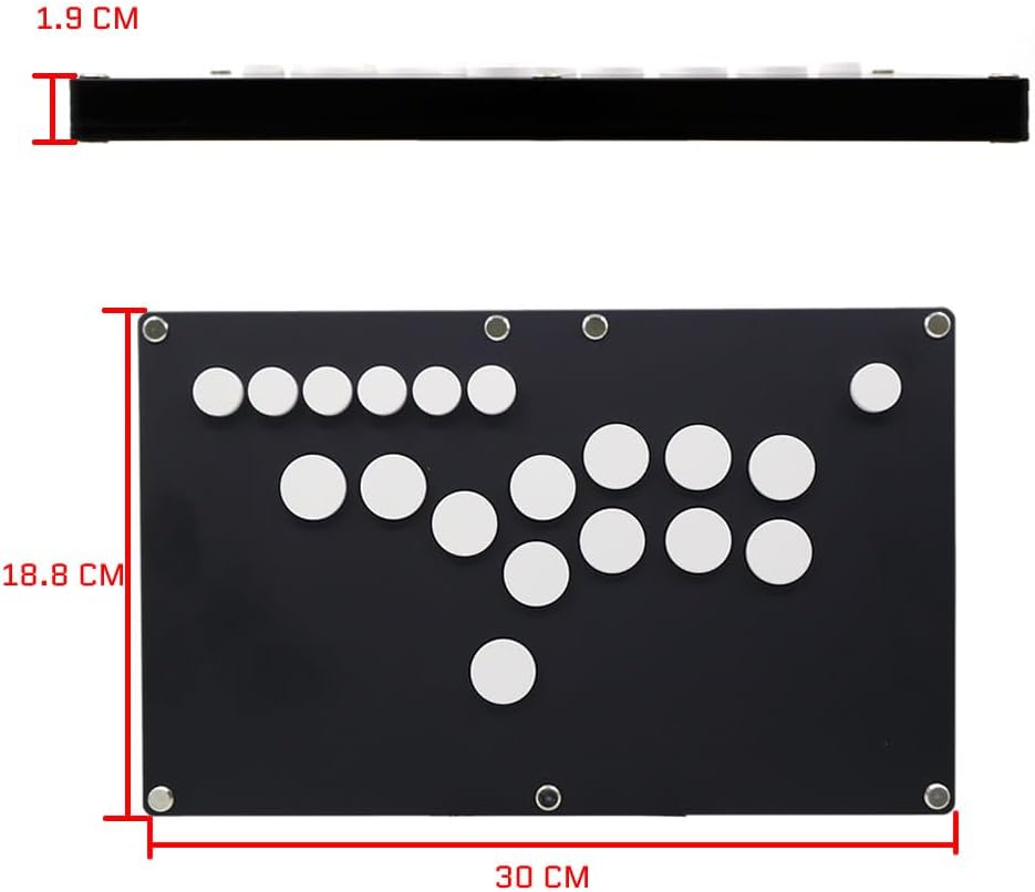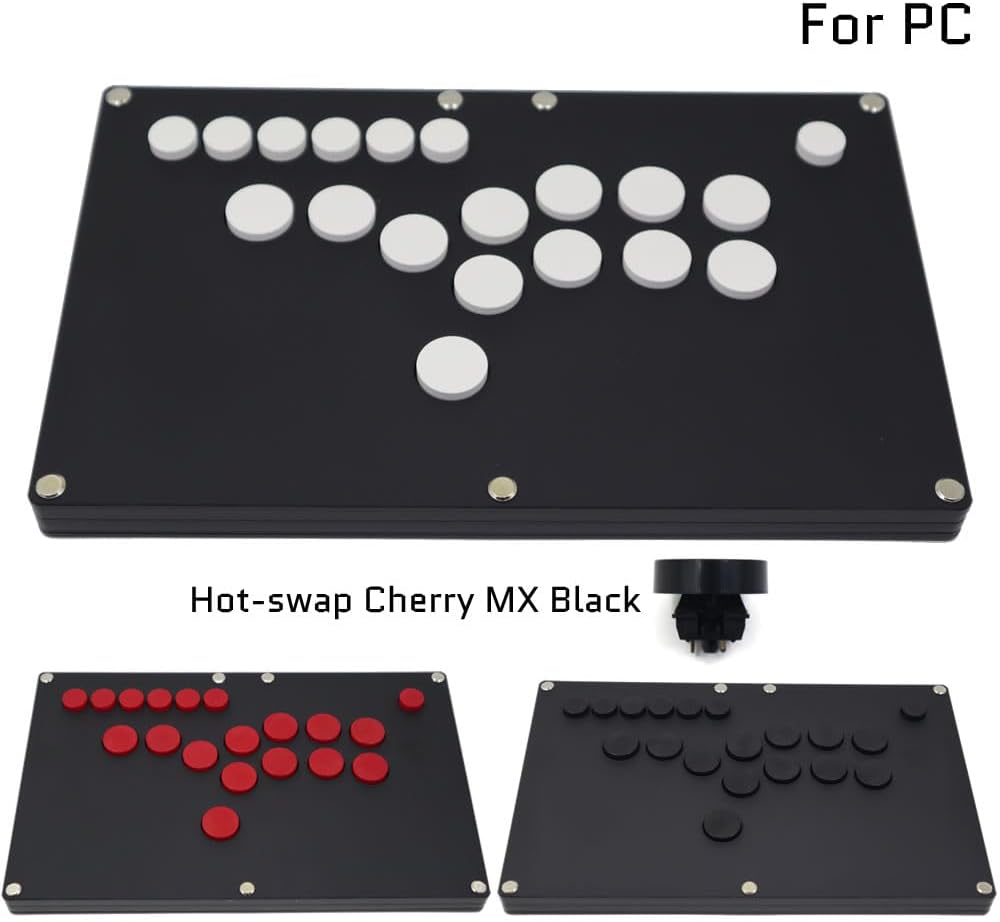 FightBox B1-PC-B is using all-acrylic ultra-thin design, the thickness is less than 2cm, and black matte acrylic panel, feel more comfortable. It has 4x24mm buttons(Cherry MX Black key switches) on the left side of the controller, instead of the traditional analog joystick, with 8x24mm buttons(Cherry MX Black key switches) for the action buttons on the right side of the controller. Using hot-swappable technology, it is convenient for users to replace their favorite mechanical key switches. The B1-PC-B is compatible with PC/Android by using Zero Delay Arcade USB Encoder. Features: 4 push buttons as directional keys 8 push buttons as action buttons All of above buttons are hot-swappable Cherry MX Black key switches Zero Delay Arcade USB Encoder inside 7 buttons on the top of the panel as function buttons SOCD Supported, UP + DOWN = UP, LEFT + RIGHT = NEUTRAL directional cleaning, a tournament standard for all buttons Game Controller Specification: Cable type: USB (Type B to Type A) Cable length: about 3m Material: Acrylic Panel Size: 30x18.8cm Product Height: 1.9cm Product Weight: 1.2kg Package Includes: 1 x B1-PC All Buttons Arcade Joystick Game Controller For PC/Android