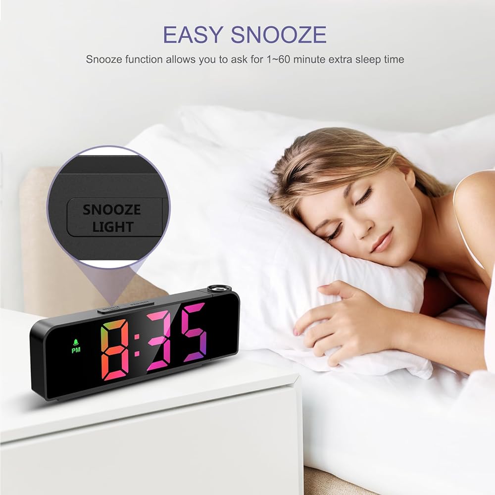 JXTZ Projection Alarm Clock, Alarm Clocks with Projection on Ceiling with 7.9" Large Display, LED Digital Clock with 4 Level Brightness, Snooze, Temperature, Clock for Bedroom Living Room, Colorful