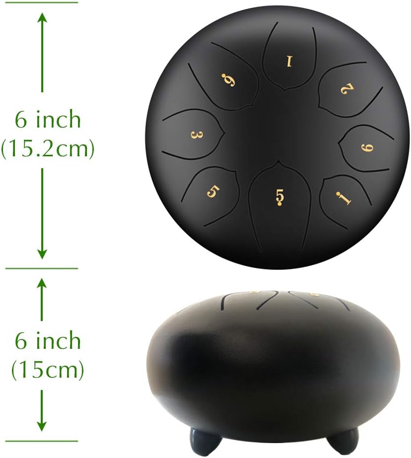Steel Tongue Drum - 6 inches 8 Notes - Percussion Instrument - with Pouch, Book, Mallets, Finger Picks