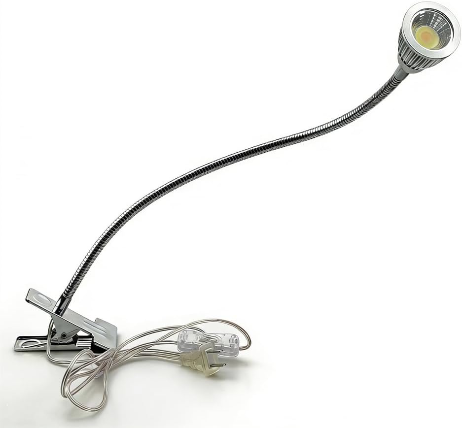 QUANS 5W 3 Colors LED COB Clip on Light Silver 19.68 INCH 50 CM Tube Desk Flexible Table Bed Lamp Work Home Design Lighting 110V 220V 85V - 265V AC with US Plug Switch on Off 500LM (Silver)