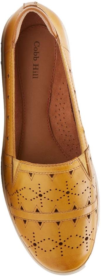 Show off your unique style with the effortless elegance and lavish appeal of the Cobb Hill Bailee Slip Loafers. Burnished leather upper with laser-cut detailing. Synthetic lining and insole. Removable footbed with Cobb Hill cushioning for elevated comfort. Nylon stability shank embedded into midsole offers better arch support. Easy slip-on style. Classic round toe silhouette. TPR outsole provides traction control. Measurements:Weight: 10 oz.