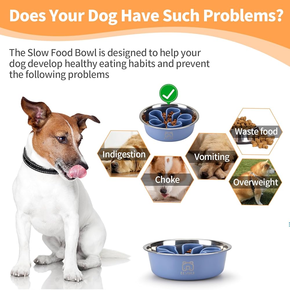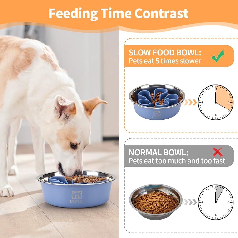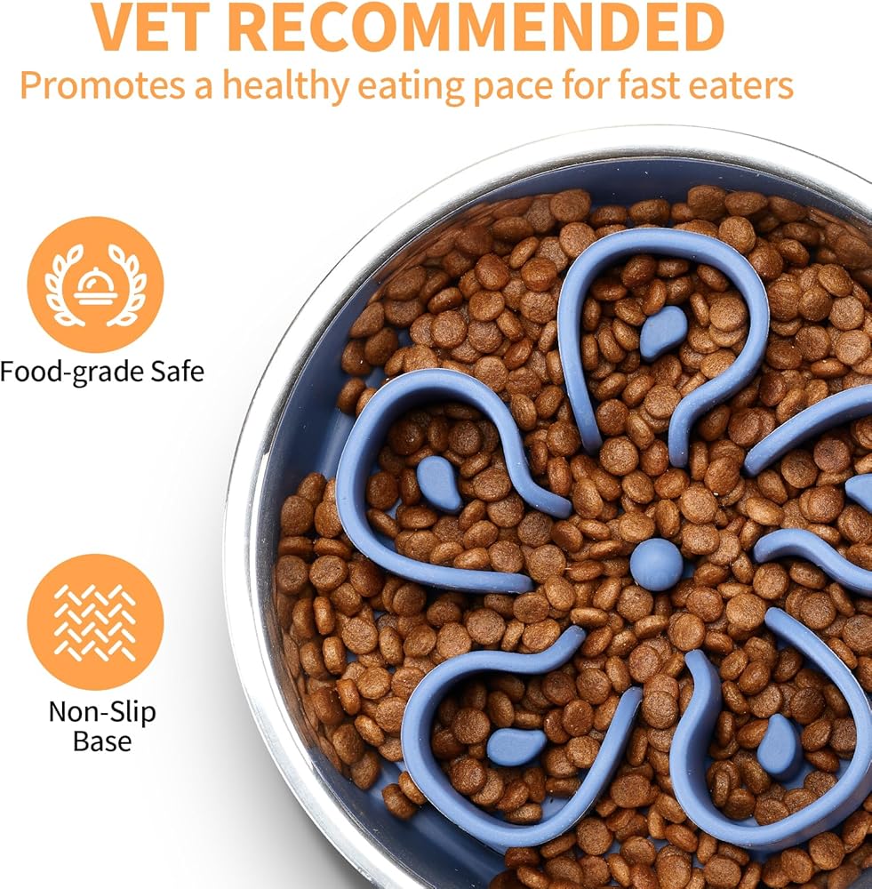 ✓ 2-IN-1 SLOW FEEDER DOG BOWL: Easily transform our pet food bowl into a slow feeder bowl with a silicone insert. Our metal slow feeder dog bowl increases feeding time, slows eating speed, and reduces digestive problems. One bowl, two purposes, saving your time and money.
