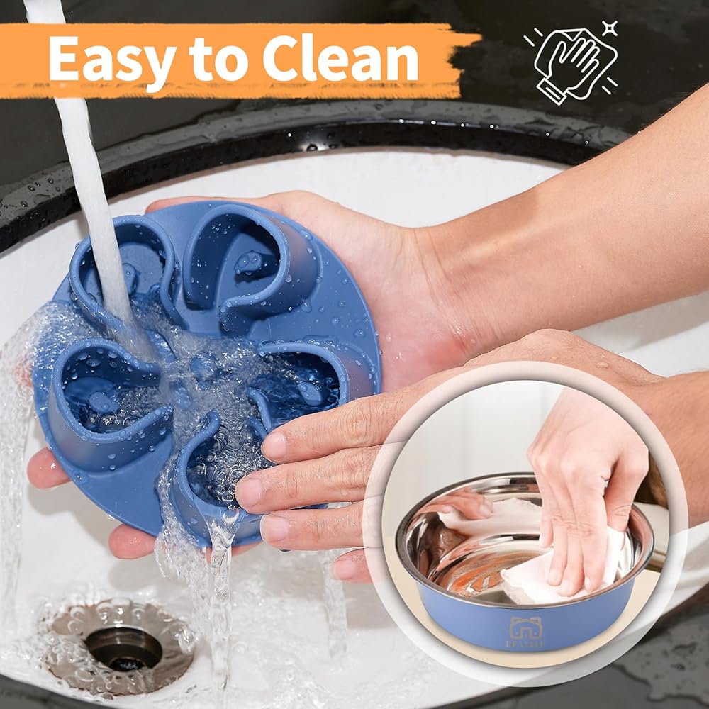 ✓ 100% FOOD GRADE: Our metal slow feed dog bowls are made from 100% food-grade 304 stainless steel, ensuring they resist rust and are BPA and phthalate-free to keep your pet healthy. The silicone slow feeder insert is gentle on your pet's sensitive nose.