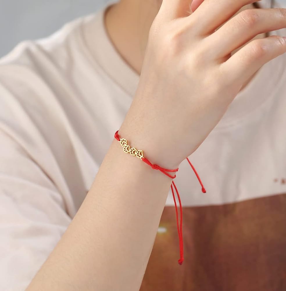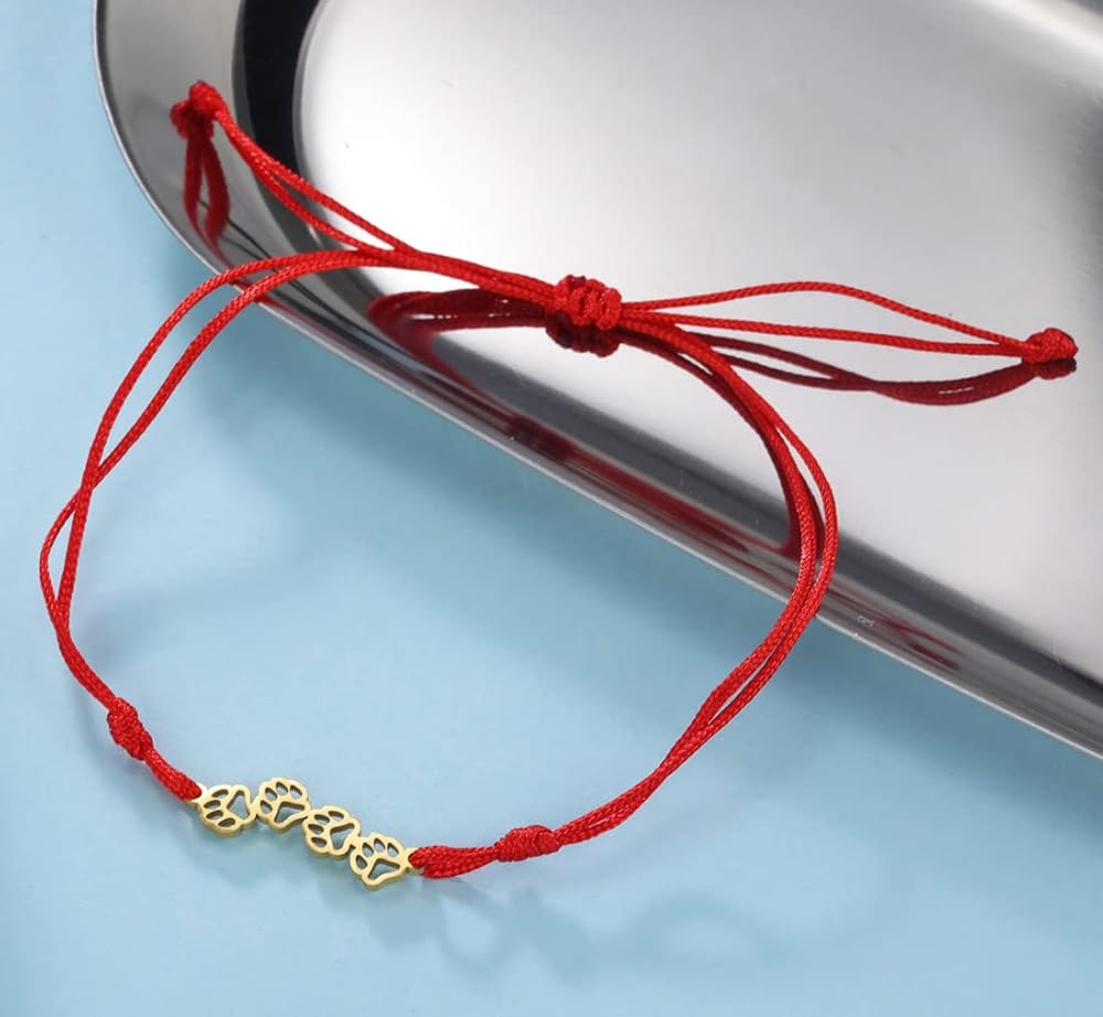 🐱Why choose this bracelet ? ➽ 1.The chain of this bracelet is woven from jade thread, which is very delicate and lightweight, and is not easy to break. ➽ 2.Two-way push-pull opening and closing, easy to adjust the size ➽ 3.Design concept:Inspired by animal paws, perfect for pet lovers, wearing a pet paw bracelet also means your pet is always by your side and never leaves you. ➽ 4.Unique Gift: This bracelet is very cute and fashionable, perfect for your lover, family, friends, etc. on Christmas, Valentine's Day, Mother's Day, anniversaries, etc. It is also the best gift for pet lovers 🐱Specification: Color: red,black Quantity: 1 piece Package :Each Necklace comes with a velvet gift bag.