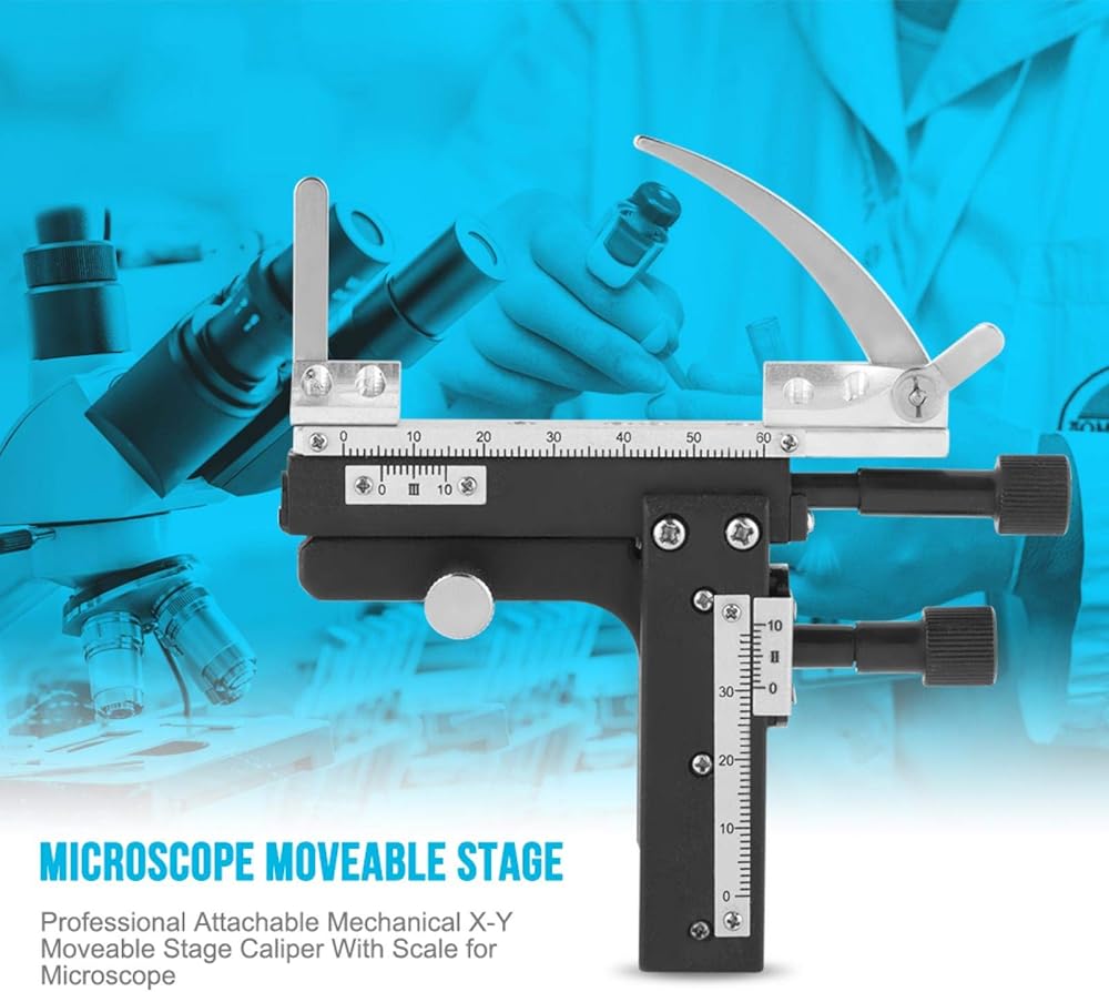 DURABLE MATERIALS: Microscope calipers are made of high quality plastic and metal, the microscope movable stage made of this material is durable and durable.
