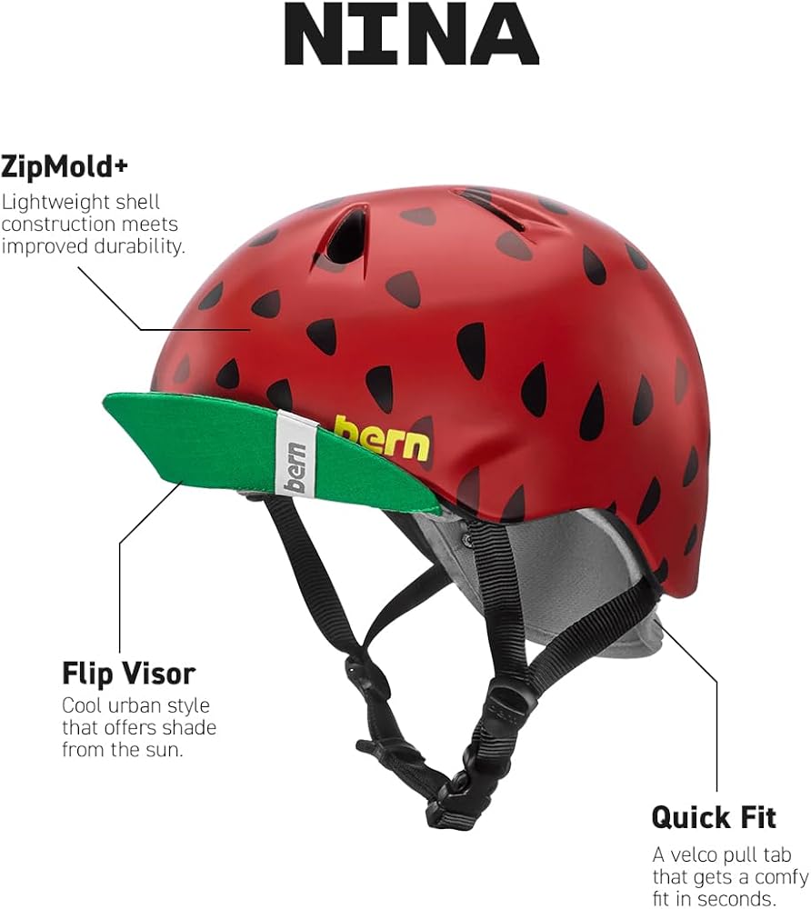 Style: Nina brings fun graphics, cool colors and Bern's patented soft flip visor to the littlest riders.