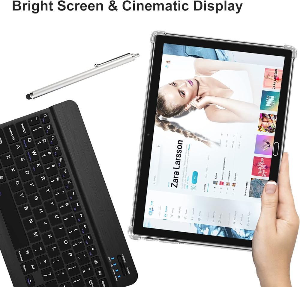 [كاميرا 13 ميجابكسل مع شاشة عالية الدقة]: جهاز لوحي 10.1 بوصة يحتوي على كاميرا خلفية 13 ميجابكسل مع كاميرا أمامية 5 ميجابكسل، ويوفر صورًا واضحة ووقت استجابة ثابت. يضفي الحيوية على الصور الأكثر سطوعًا باستخدام زوايا مشاهدة أوسع. شاشة مقاس 10 بوصات مع إعادة إنتاج ألوان دقيقة، مثالية لمشاهدة الأفلام المذهلة ولعب الألعاب غير الرسمية وقراءة الكتب المصورة وإجراء مكالمات الفيديو.