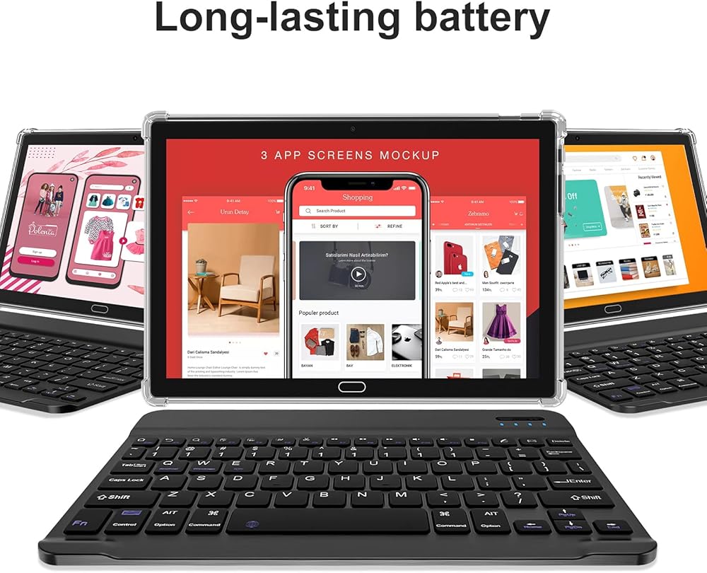 [وحدة تخزين داخلية 64 جيجابايت]: يحتوي الكمبيوتر اللوحي ZONKO على مساحة تخزين داخلية 4 جيجابايت + 64 جيجابايت، ومن الممكن تنزيل أكثر من مليون تطبيق. يأتي مع لوحة مفاتيح بلوتوث وماوس لاسلكي وحقيبة واقية قابلة للطي، يمكنه تحويل الجهاز اللوحي بمرونة إلى وضع كمبيوتر محمول ووضع الهاتف و وضع الكمبيوتر للاستخدامات المختلفة - الكتابة أو التصفح أو الألعاب أو مكالمات الفيديو أو مشاهدة الأفلام، يوفر لك ميزات وقدرات لا حدود لها من أجل استمتاعك. هدية مثالية للطلاب والكتاب والمدونين أو رجال الأعمال!