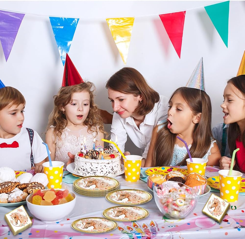 Suitable for occasions:holiday birthday dessert plate and napkin set is suitable for children's birthday parties or birthday themed parties,birthday themed birthday parties, baby showers, street parties, Boy's Birthday, Girl's Birthday, Man's Birthday, Kentucky derby party, derby day, racking horse party,Woman's Birthday, etc.which will make your party more Interesting and attractive, and leave deep memories for your guests and more compliments.