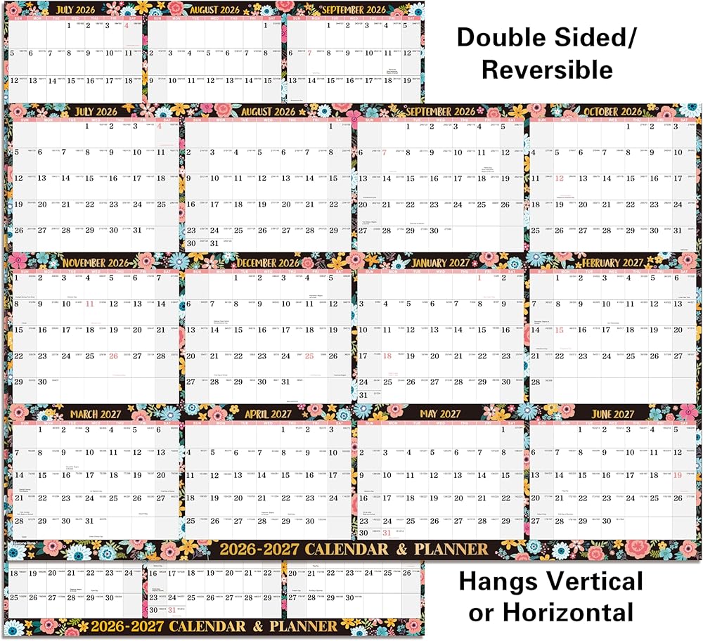 🌸 REVERSIBLE WALL PLANNER 2024-2025 - Our huge dry erase wall calendar are 2-sided and can be displayed either vertically or horizontally on one page which allows for multiple wall hanging configurations. Choose the vertical or horizontal layout that best fits your space.