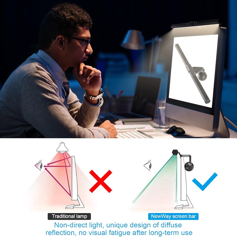 NewWay Monitor Light Bar for Desktop/Laptop Polarized Lampe No Screen Glare for Eye Protection, Adjustable Brightness and Color Temperature Desk Light for Reading