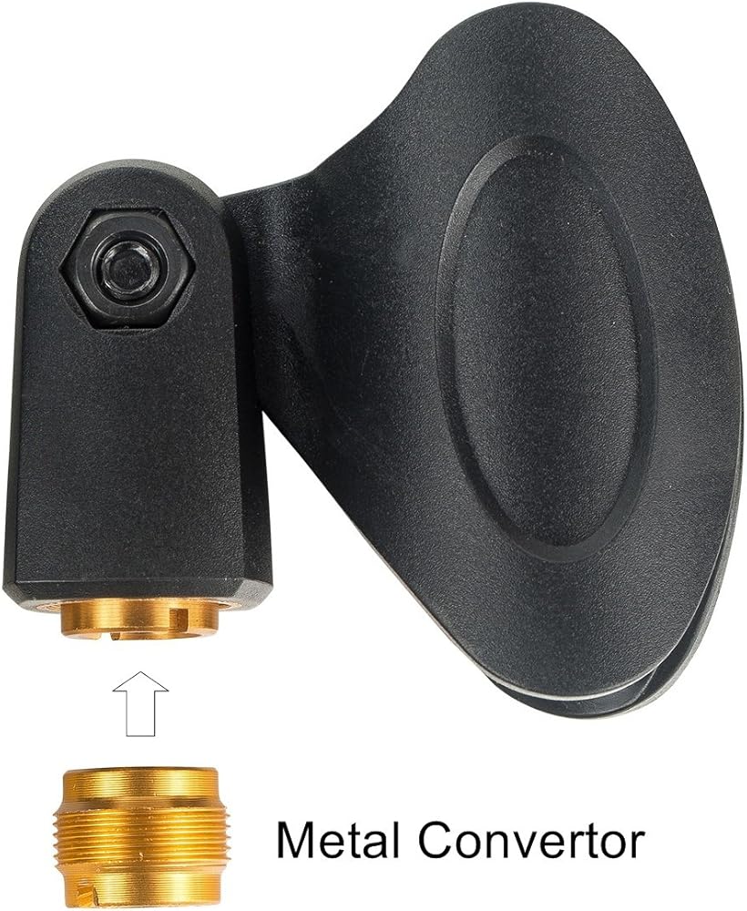 the female screw thread of microphone clip and the standard 3/8-inch female to 5/8- inch male screw adapter are golden,made of metal,better than plastic.Using the female screw thread,This arm Stand is compatible with Blue Yeti,Snowball and Other Microphones.