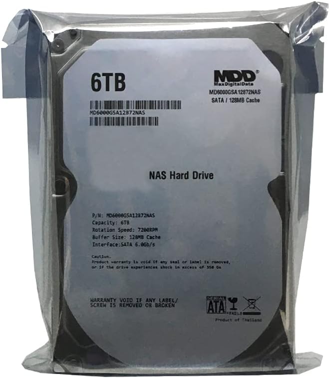 MaxDigitalData 6TB 7200RPM 128MB Cache SATA 6.0Gb/s 3.5-inch Internal Hard Drive for NAS Network Storage (MD6000GSA12872NAS) - 3 Years Warranty (Renewed)