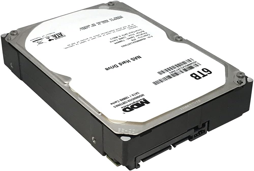 MaxDigitalData (MD6000GSA12872NAS) 6TB 128MB Cache 7200RPM SATA 6.0Gb/s 3.5" Internal Hard Drive for NAS Network Attached Storage. Purpose built for NAS solution, It is perfect for teams needing to save more data and work faster. Designed for up to 8 bays NAS and featuring 8TB and speeds of up to 200MB/s, these internal hard drives are specifically built for less wear and tear, little to no noise/vibration, no lags or down time, increased file-sharing performance, and lower power consumption.
