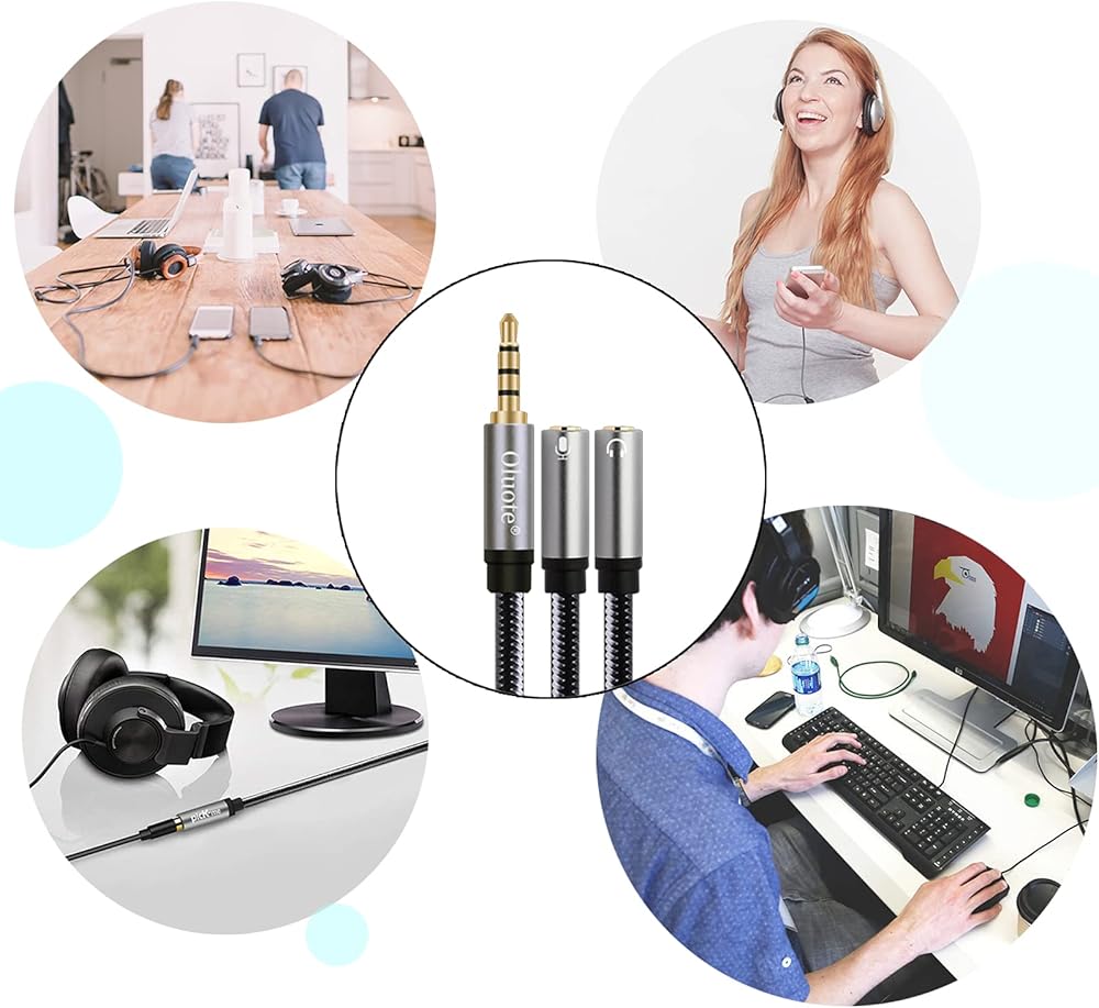 【Headphone Mic Splitter Adapter】3.5mm headphone splitter cable can connect dual-plug headset or microphone and headset to most devices with 3.5mm AUX ports, compatible with PS4 Xbox Laptop PC Smartphone etc.