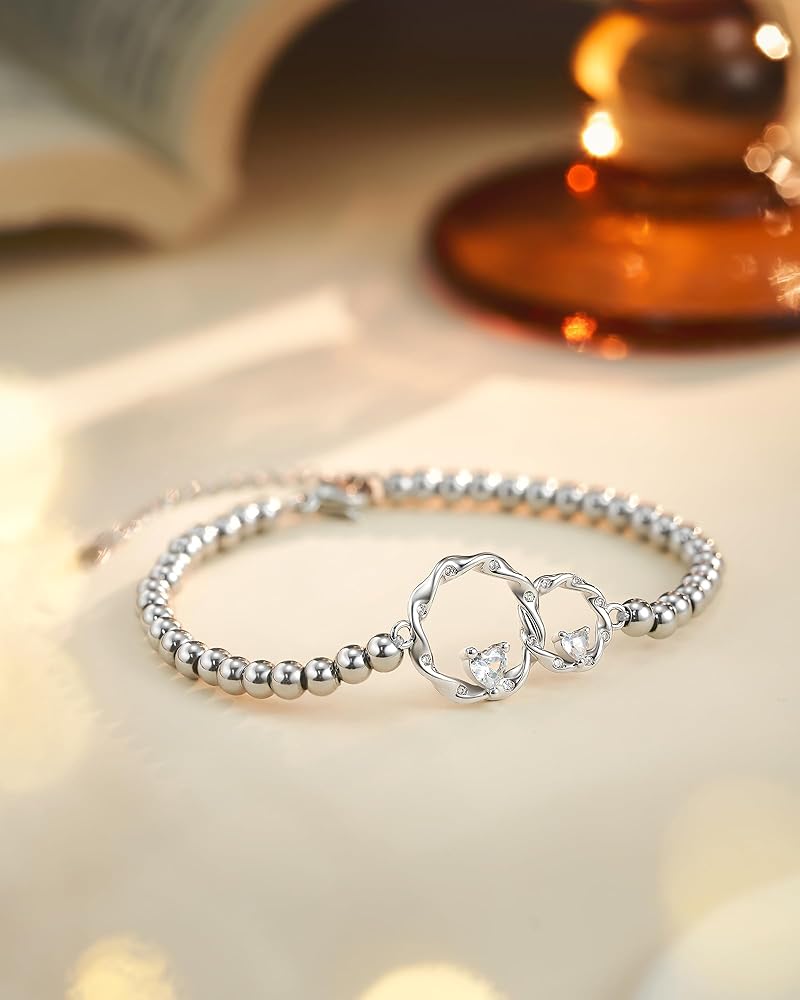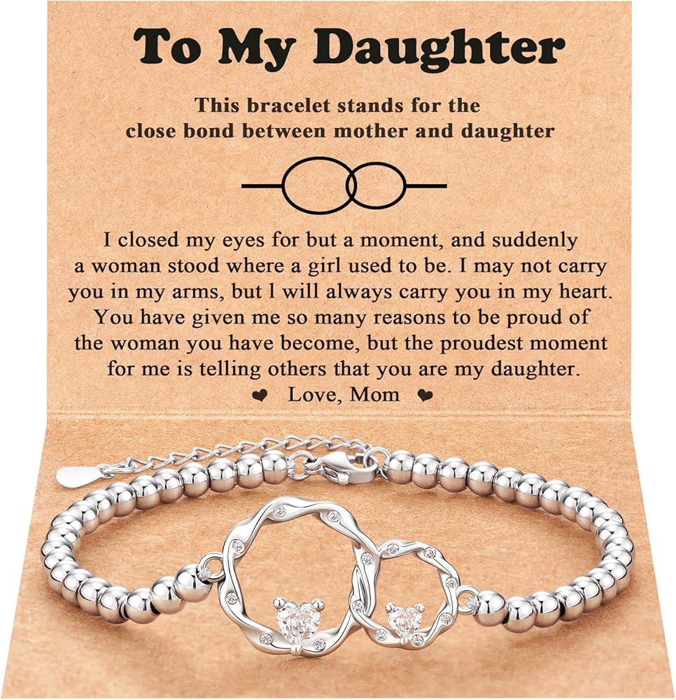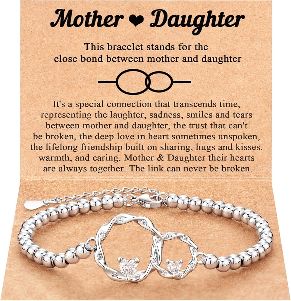 [Gift Package] - Bracelet comes with a gift card and touching words about Mother & Daughter. The dainty bracelet is an ideal choice for Birthday Gifts, Mothers Day gifts, Valentines Day gifts, Christmas gifts. A gift from daughter to mom, or a gift from mother to daughter