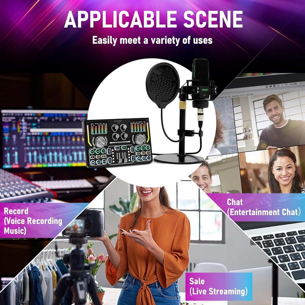【مجموعة بودكاست قوية الوظائف】معدات البث المباشر هذه عبارة عن بطاقة صوت رقمية احترافية للتسجيل والبث المباشر، معالج عكسي DSP رقمي عالي السرعة مدمج، يدعم البث المباشر للهاتف المحمول المزدوج، تسجيل رقمي عالي الوضوح عبر USB، مرافقة لاسلكية بلوتوث، 11 نوعًا مدمجًا من تأثيرات الإحماء. مجموعة متنوعة من التغييرات الصوتية المثيرة للاهتمام. تُستخدم حزمة البودكاست هذه على نطاق واسع في الاستوديوهات الحية الاحترافية واستوديوهات التسجيل والترفيه الشخصي والمشاهد الأخرى.