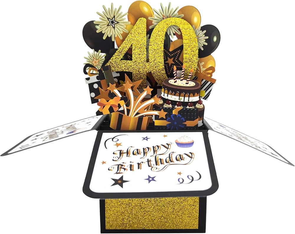 Introducing our Glittery Birthday Pop Up Card - the perfect way to celebrate birthdays in style! With its eye-catching gold and black 3D design, this card is sure to impress any recipient and make a lasting impact.
