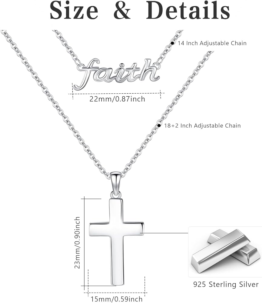 Faith Necklace,S925 Sterling Silver Faith Cross Necklaces for Women Girls Sterling Silver Birthstone Pendant Jewlery- Christian faith Script Over Fear Jewelry Gift