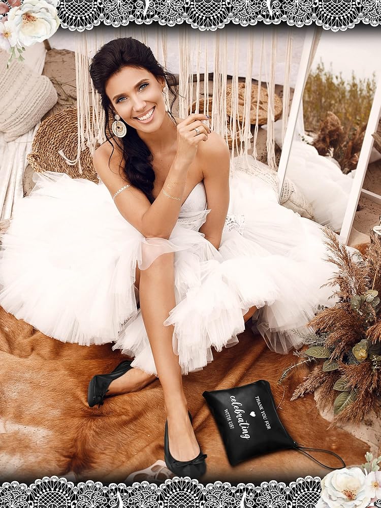 Convenient and Portable Packaging: each pair of our foldable ballet flats comes in a cute champagne gold purse, allowing you to carry them easily; Whether you want to store them in your glove box, handbag, or elsewhere, our champagne gold ballet flats are ideal for transition from formal ceremony to dance floor