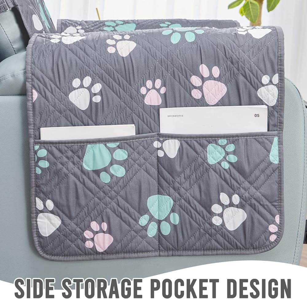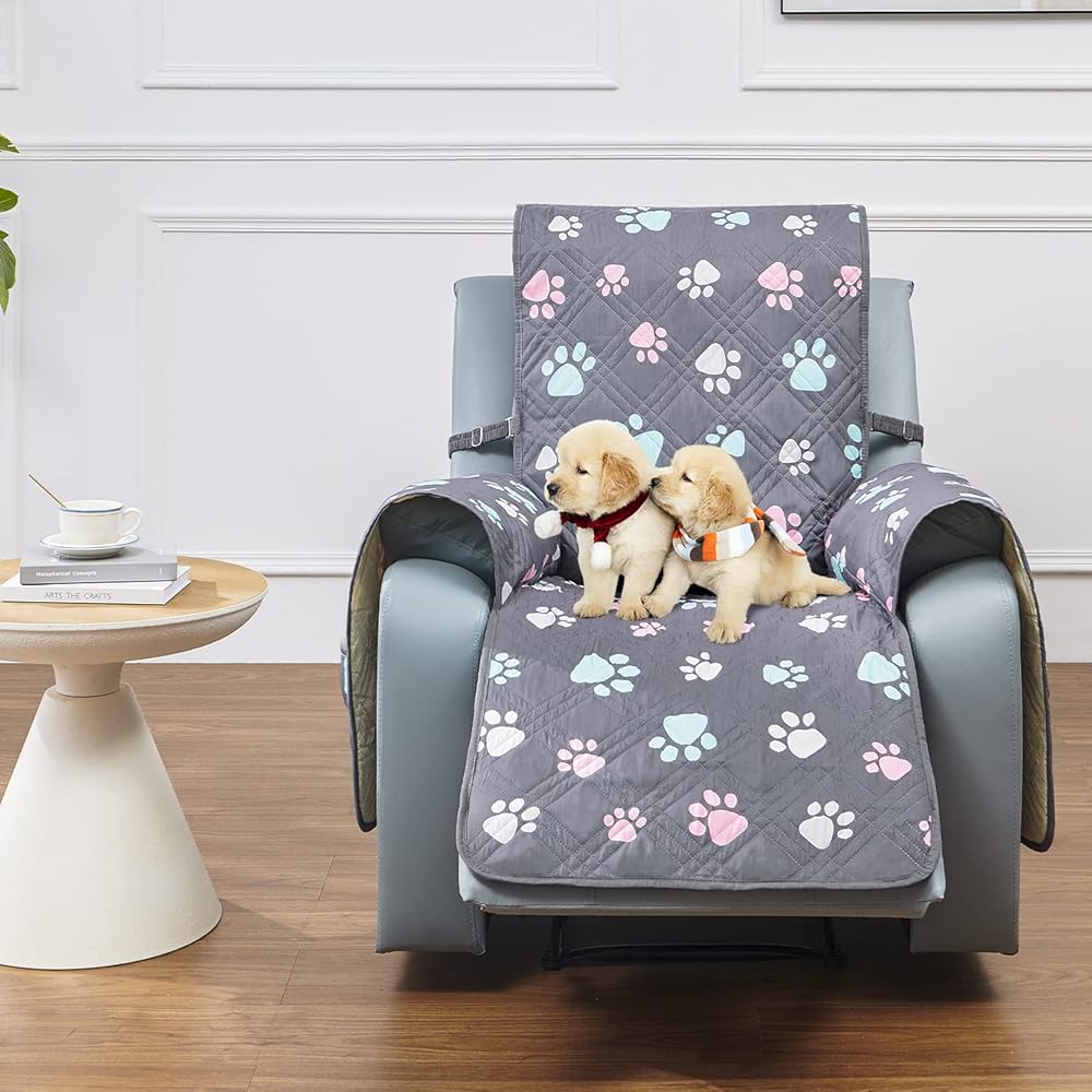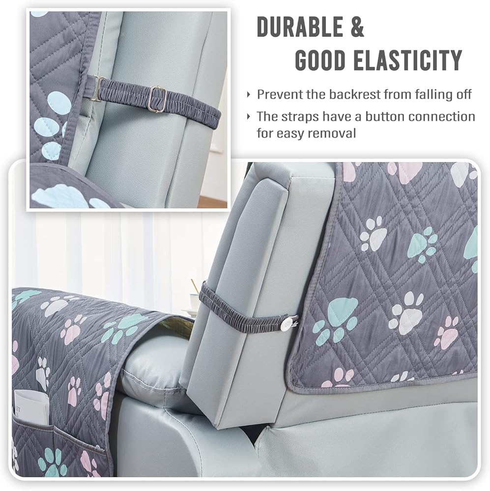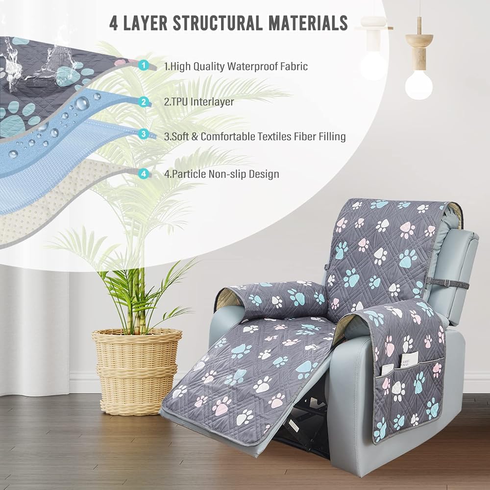 We designed this colorful recliner cover for your fur baby, or your kids, so that they can jump up and down on your new furniture, like recliner, sofas, couches or your loveseat It is made by 4 layers soft and comfortable fabric, there is one waterproof layer in the middle, so that can protect your furniture from spills pees water or juice.