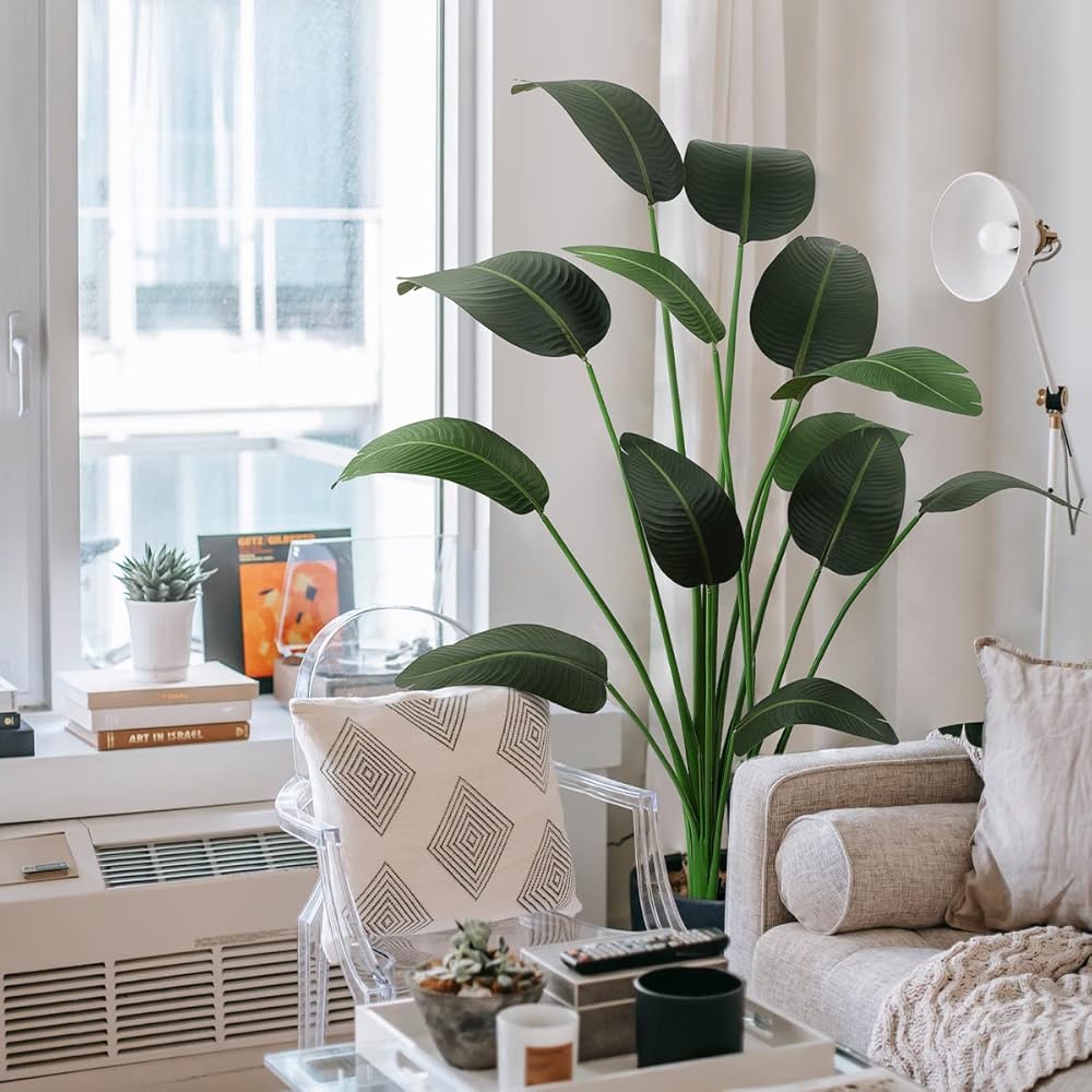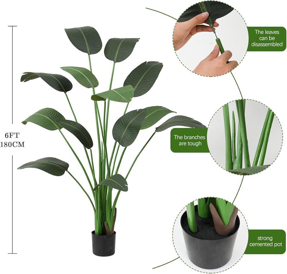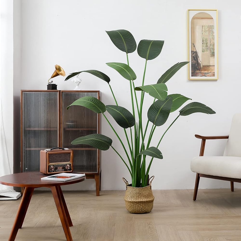 2 Pack 5.5Ft Artificial Tree Bird of Paradise,Faux Tropical Banana Leaf Plant,Fake Tropical Palm Tree with 10 Trunks for Indoor Outdoor Home Garden Office Living Room (2pack)