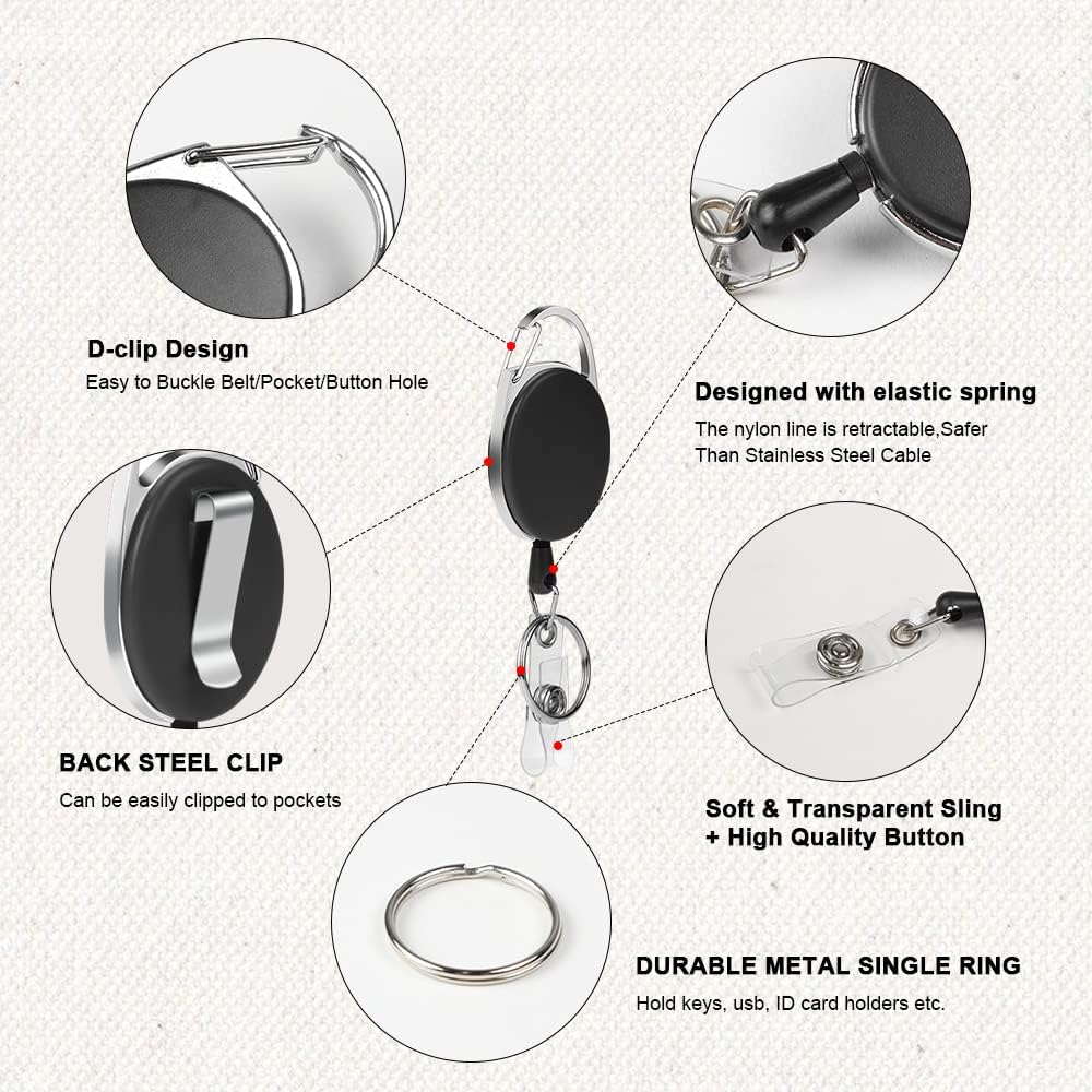 🔑【Wide Application】Retractable key ring clip on to belts, pockets, purse straps, backpacks or anywhere you like. Perfect name card ID badge holder for any industry, men and women. Great for nurses, maintenance, medical and office staff, security staff, teachers, students, custodians, factory workers, employees, outdoor enthusiast and etc.