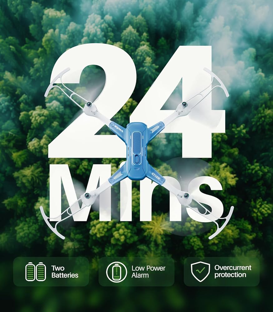 Extended Flight, Safe Charging: Equipped with two batteries, our mini drone with camera offers up to 24 minutes of flight time. Enjoy hassle-free charging with its modular design. Plus, benefit from low-voltage and over-current protection for battery longevity.