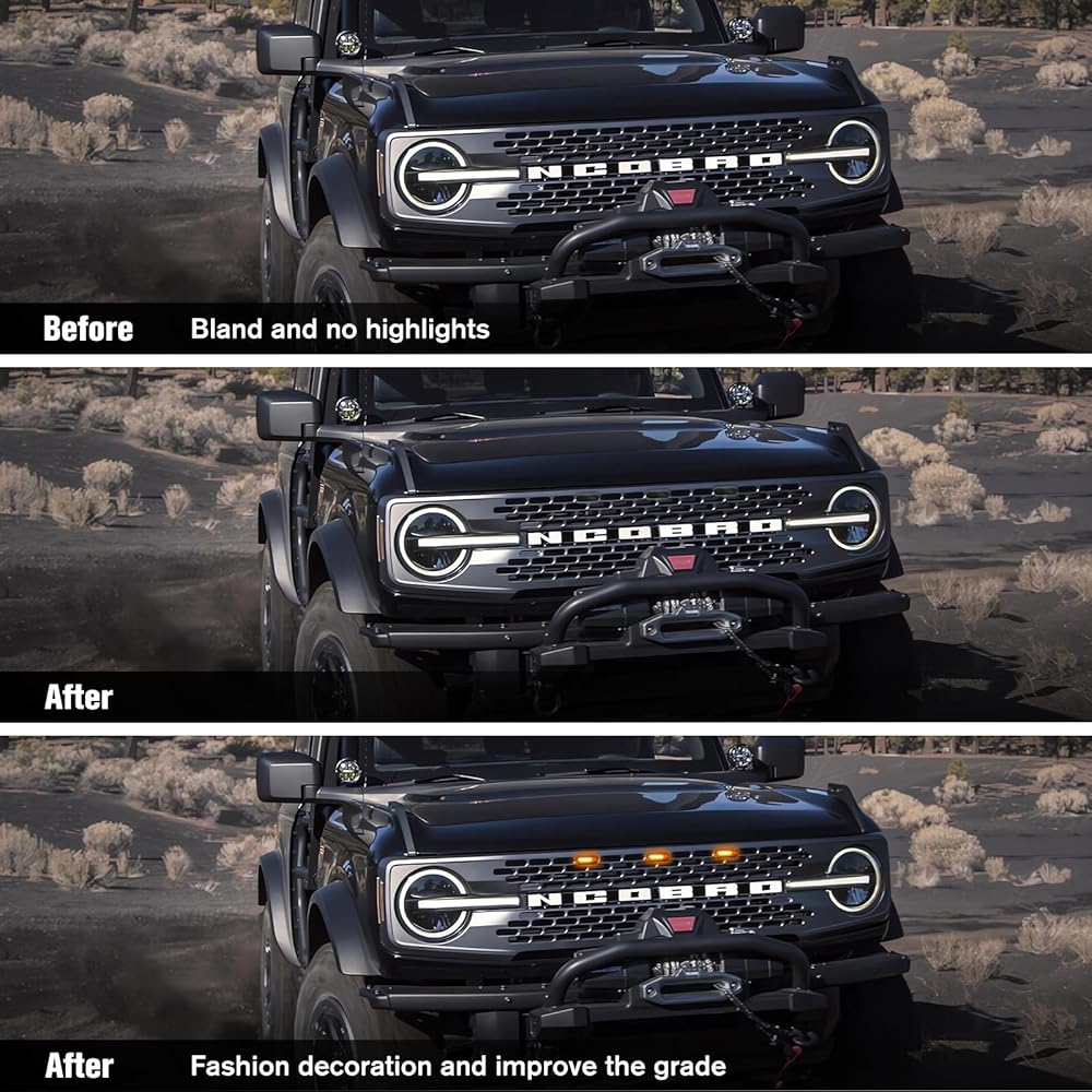 Fitment: The LED grille lights compatible with for Ford Bronco 2 Door 4 Door 2021 2022 2023 2024 Badlands/Wildtrak/Everglades.(Not compatible with for Ford Bronco Sport)