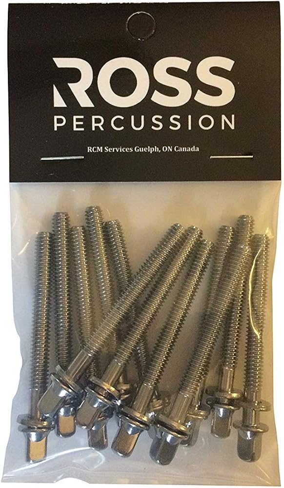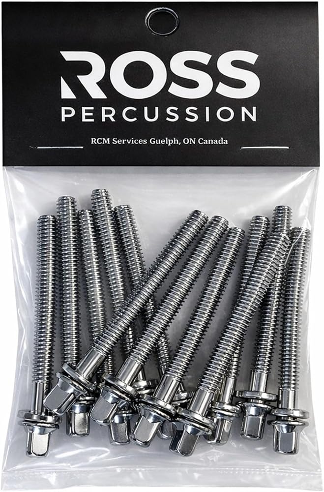 ROSS Percussion Tension Rods with washers for drums 1 5/8 Inch - 12 Pack Chrome Plated