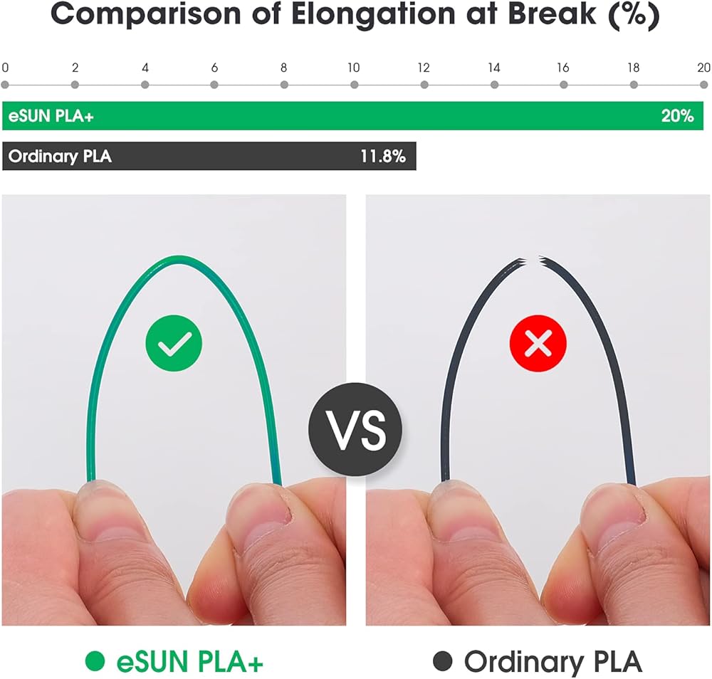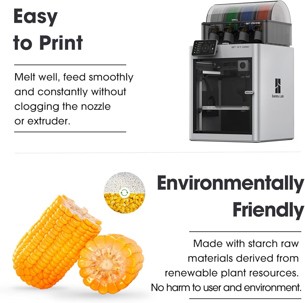 【Enhanced Toughness PLA+】PLA+ is an enhanced version of ordinary PLA. It has higher strength and better toughness, not easy to break. Made with starch raw materials derived from renewable plant resources, eco-friendly and non-toxic, no harm to to human and the environment.