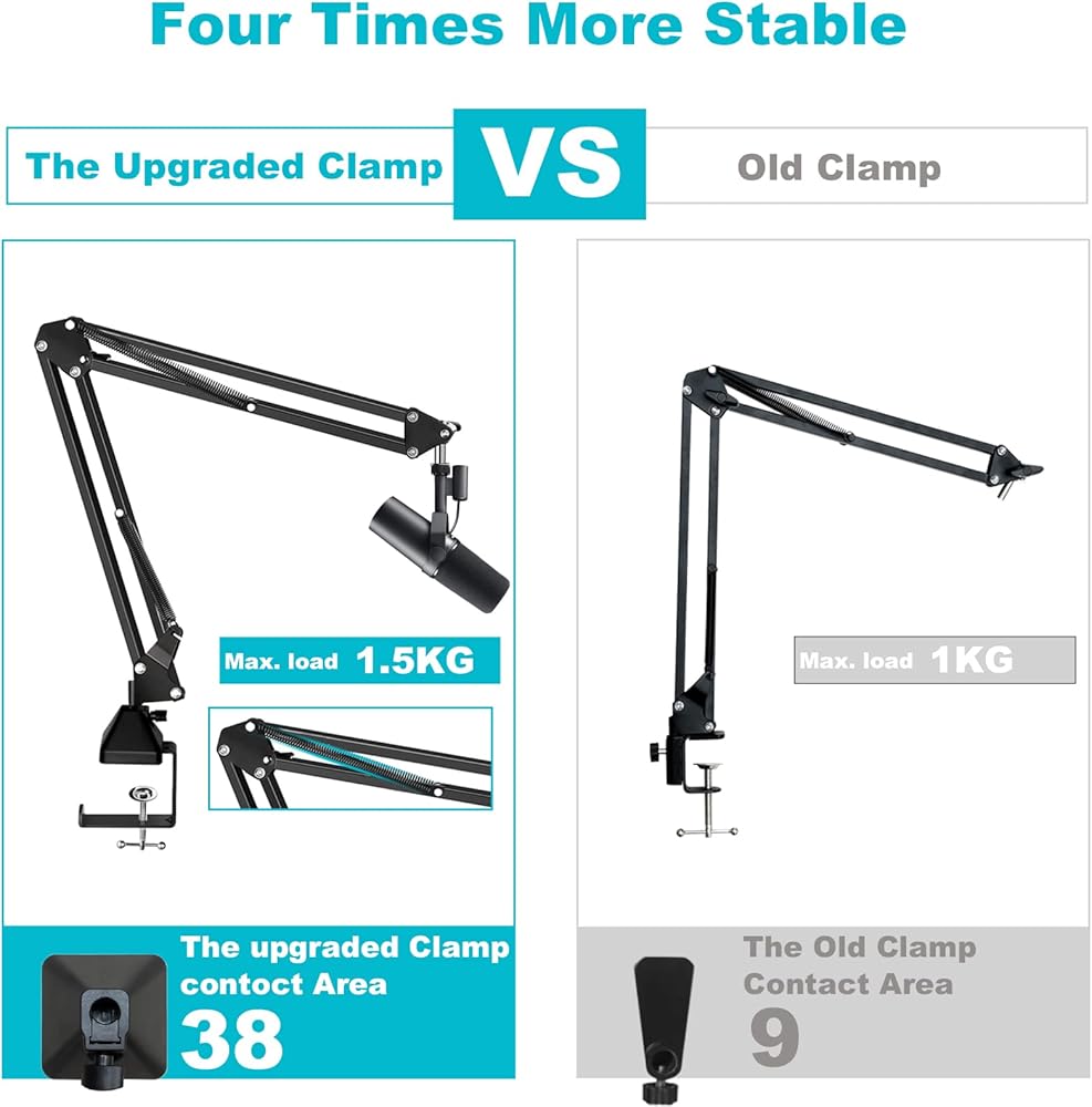 Sturdy and Durable: The upgraded black base clip enlarges the contact area with the tabletop, makes the bottom of the stand more stable, you can easily adjust it for the best effect and keep the Shure mic in place.
