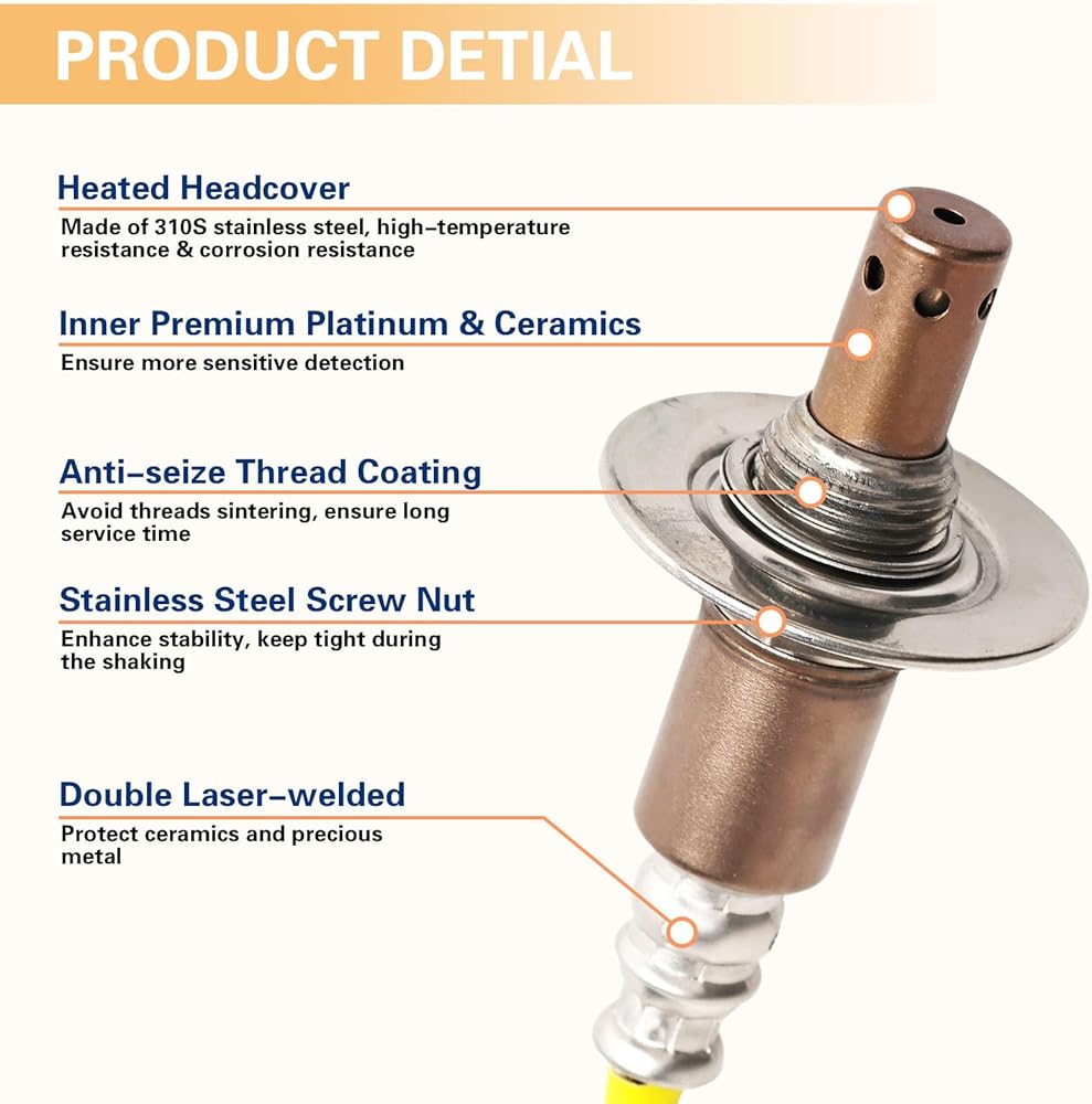 [Superior Quality] -Nifeida oxygen sensor is made of 310S stainless steel, with anti-oxidant coating, high temperatures resistance & corrosion resistance. One-piece double laser welded body, ensures proper fit, prevents premature sensor wear.
