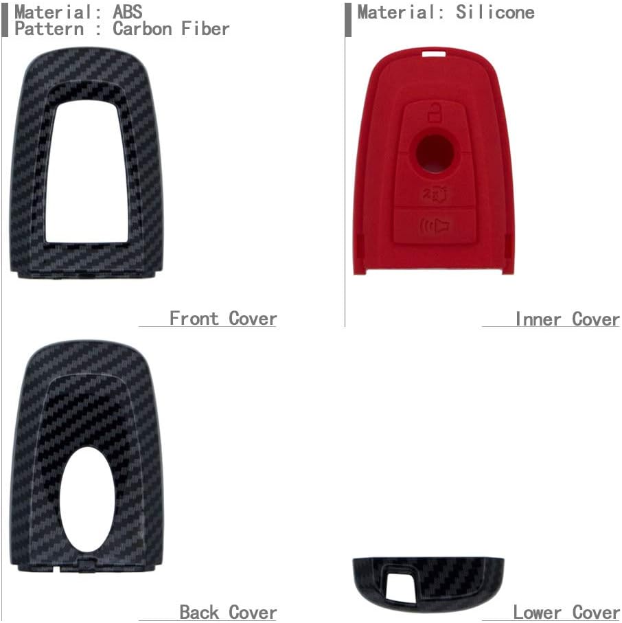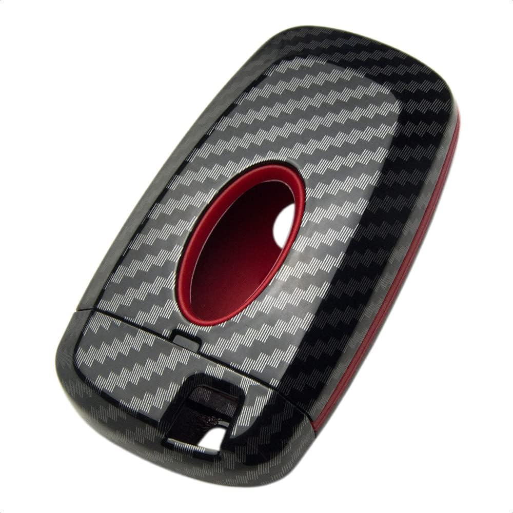 TANGSEN Smart Key Fob Case Compatible with Ford Edge Expedition Explorer Fusion for Mustang Cobra 4 Button Keyless Entry Remote Personalized Protective Cover Plastic Carbon Fiber Pattern Red Silicone