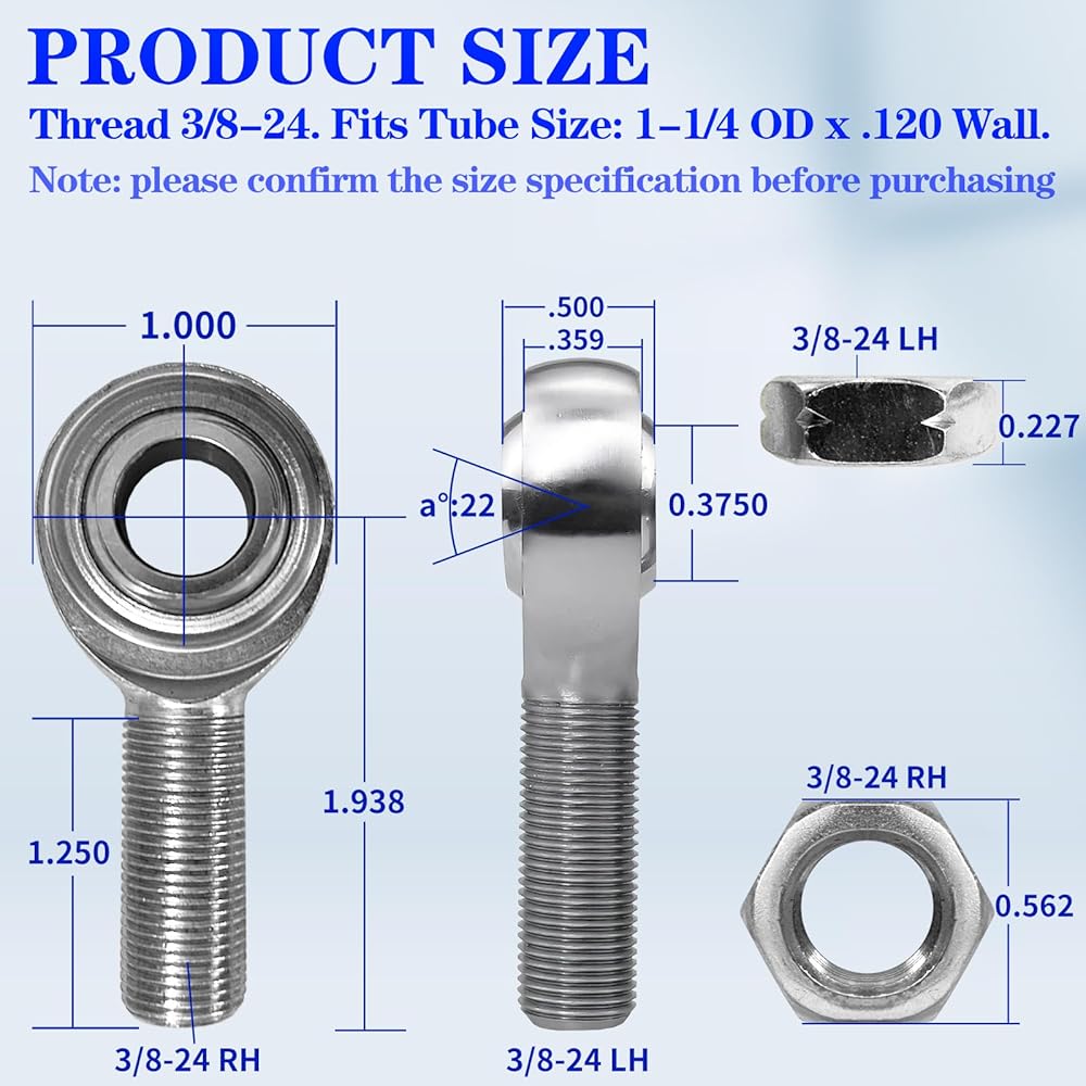 YIFUOK 3/8 x 3/8-24 Economy Male Steel Two Piece Rod End.