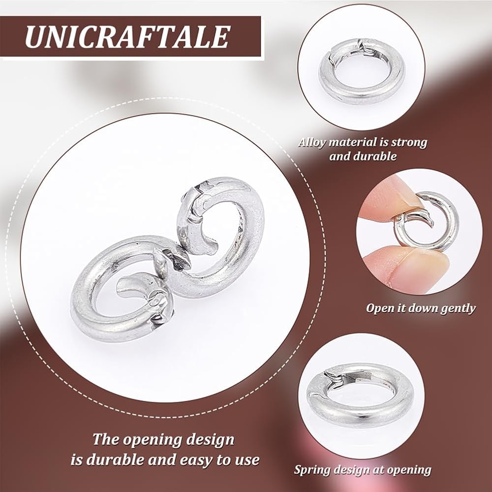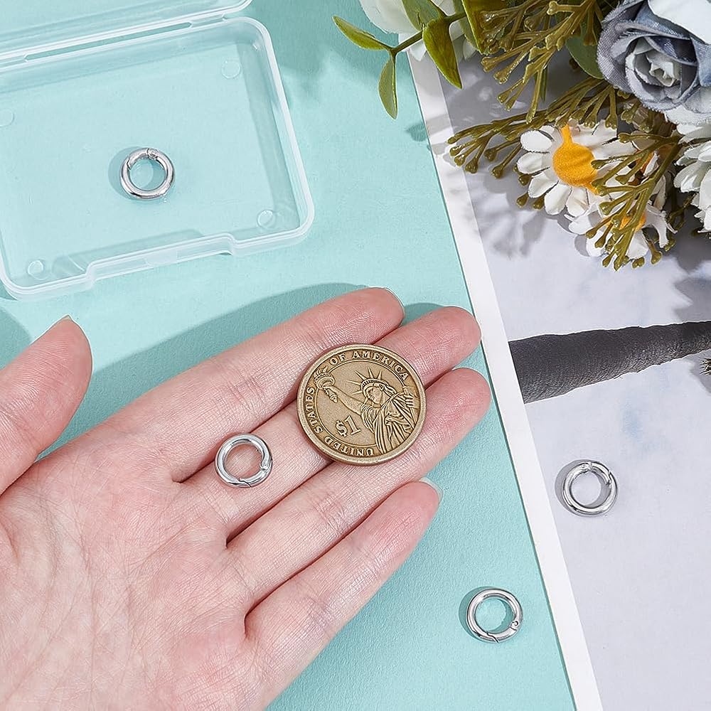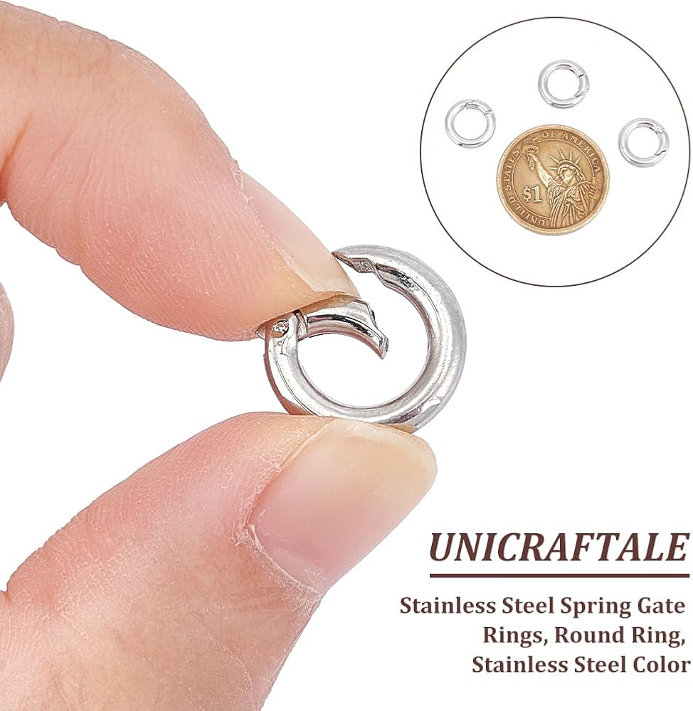 UNICRAFTALE 4Pcs 304 Stainless Steel Spring Gate Rings Round Ring Springring Trigger Clasp Spring Snap Clip Hooks Metal Split Rings Keyring Buckle for Jewelry Making