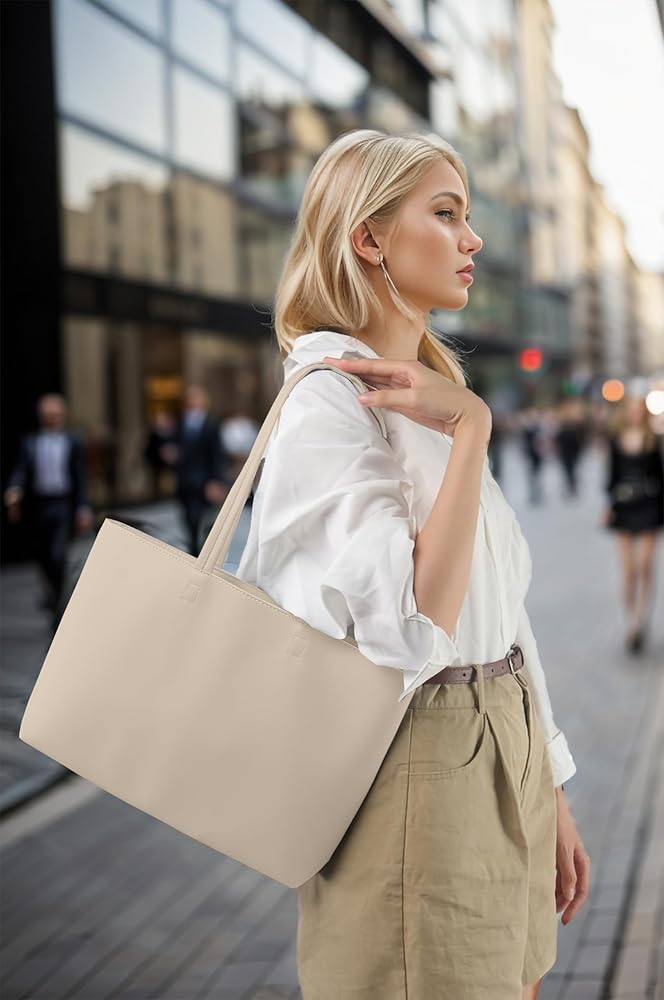【Premium Faux Leather】 ALUWU tote bag is made of thickened vegan leather with a finer texture, making it more durable and easy to clean. Inside with a suede layer, increase friction forbid things slip out from the tote, also feel soft touching.